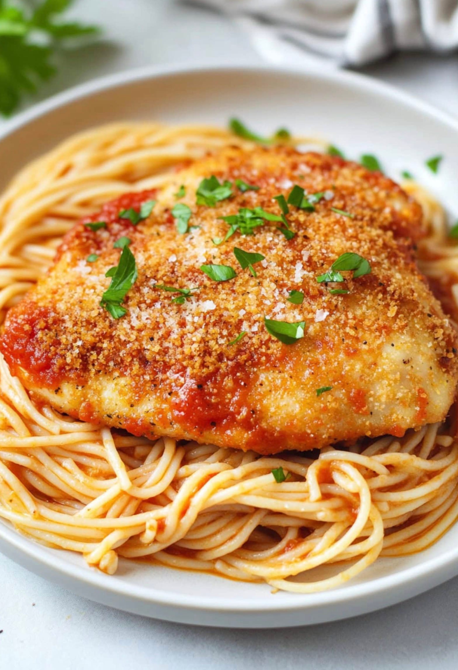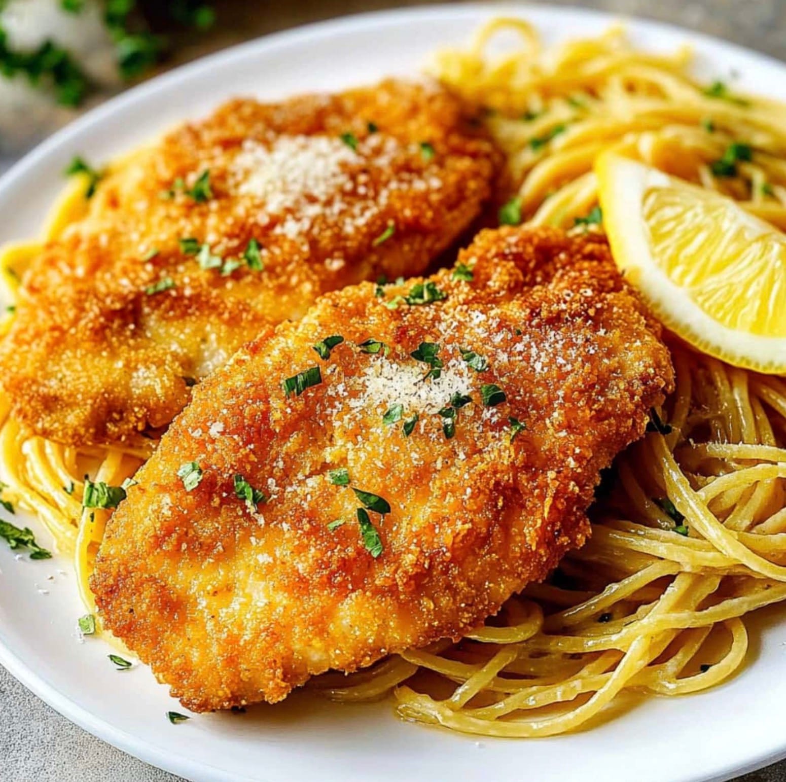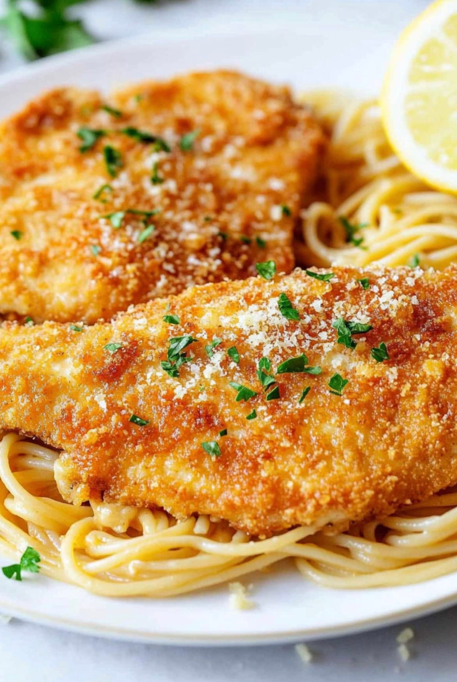The secret is in the breading process. You’ll dip the chicken in seasoned flour, then egg wash, and finally a mix of panko and Romano cheese. This triple coating ensures a super crispy exterior that locks in the juices. When fried to perfection, each bite is a delightful mix of tender chicken and savory crunch.