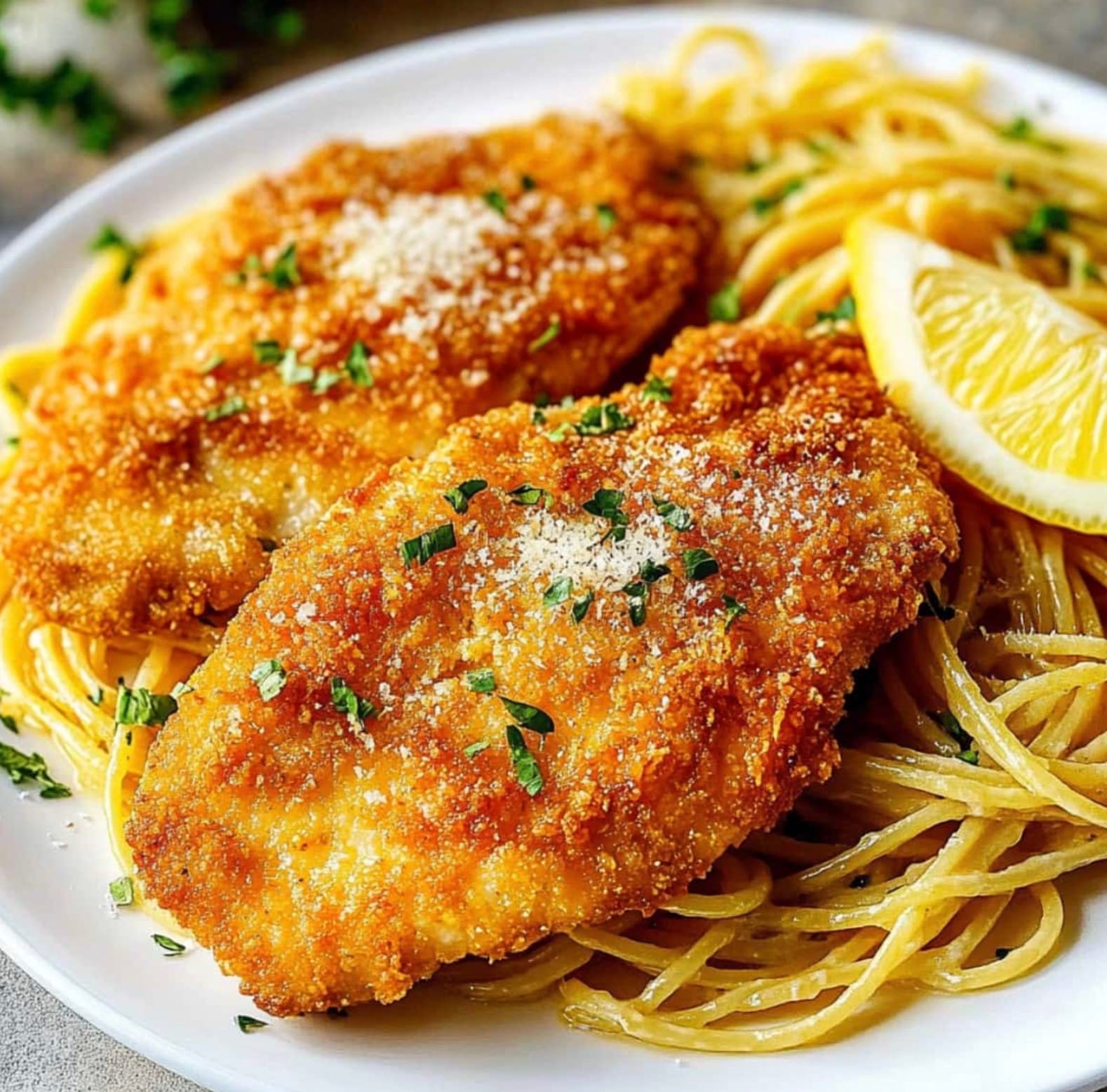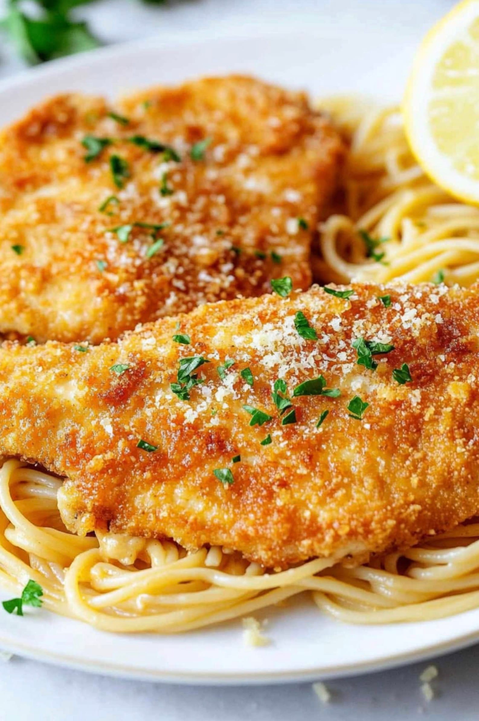 This recipe serves 6 and takes about 55 minutes from start to finish. You’ll need basic ingredients like chicken breasts, flour, eggs, and panko breadcrumbs. The secret to the amazing flavor is the Romano cheese mixed into the breading. Get ready to impress your family and friends with this delicious meal!