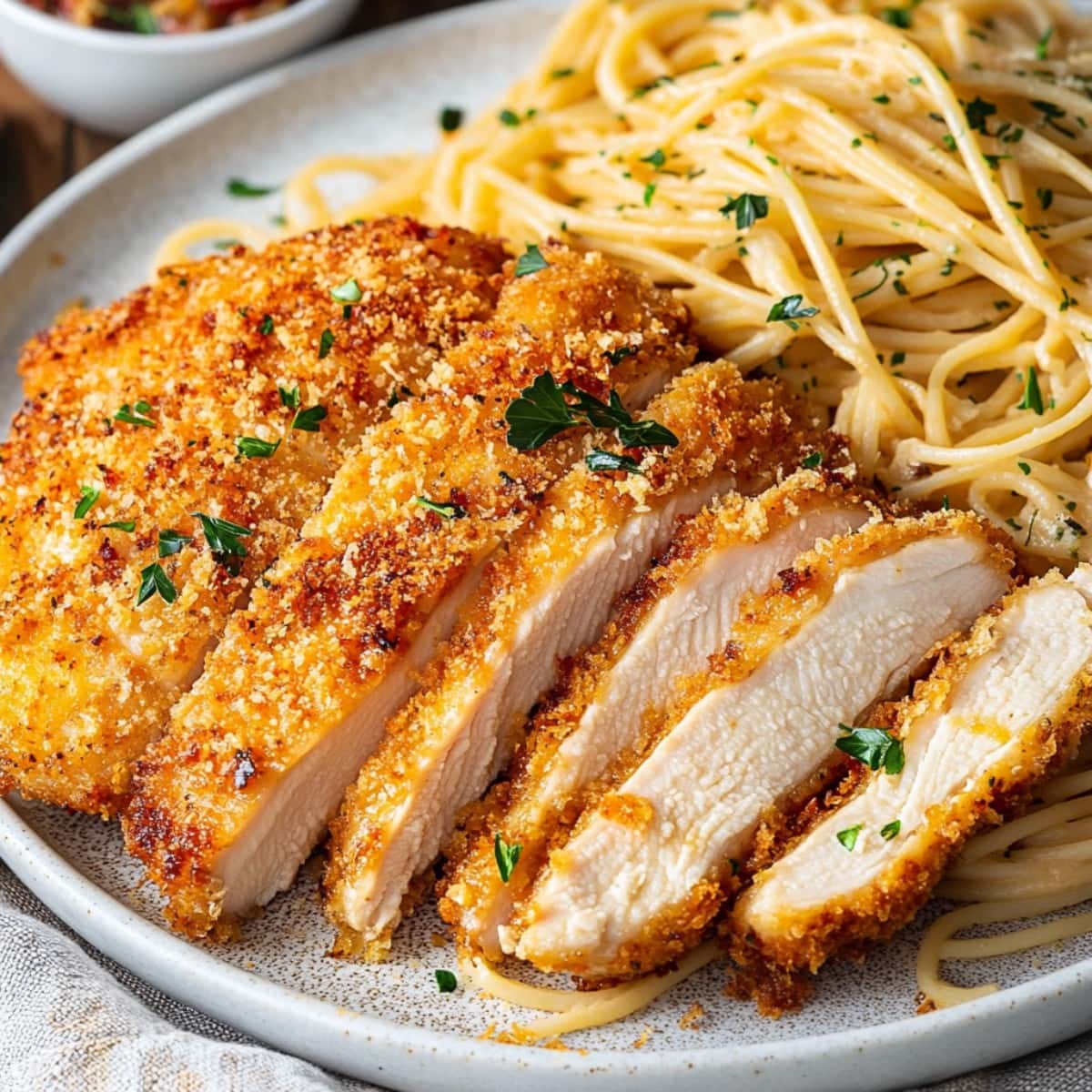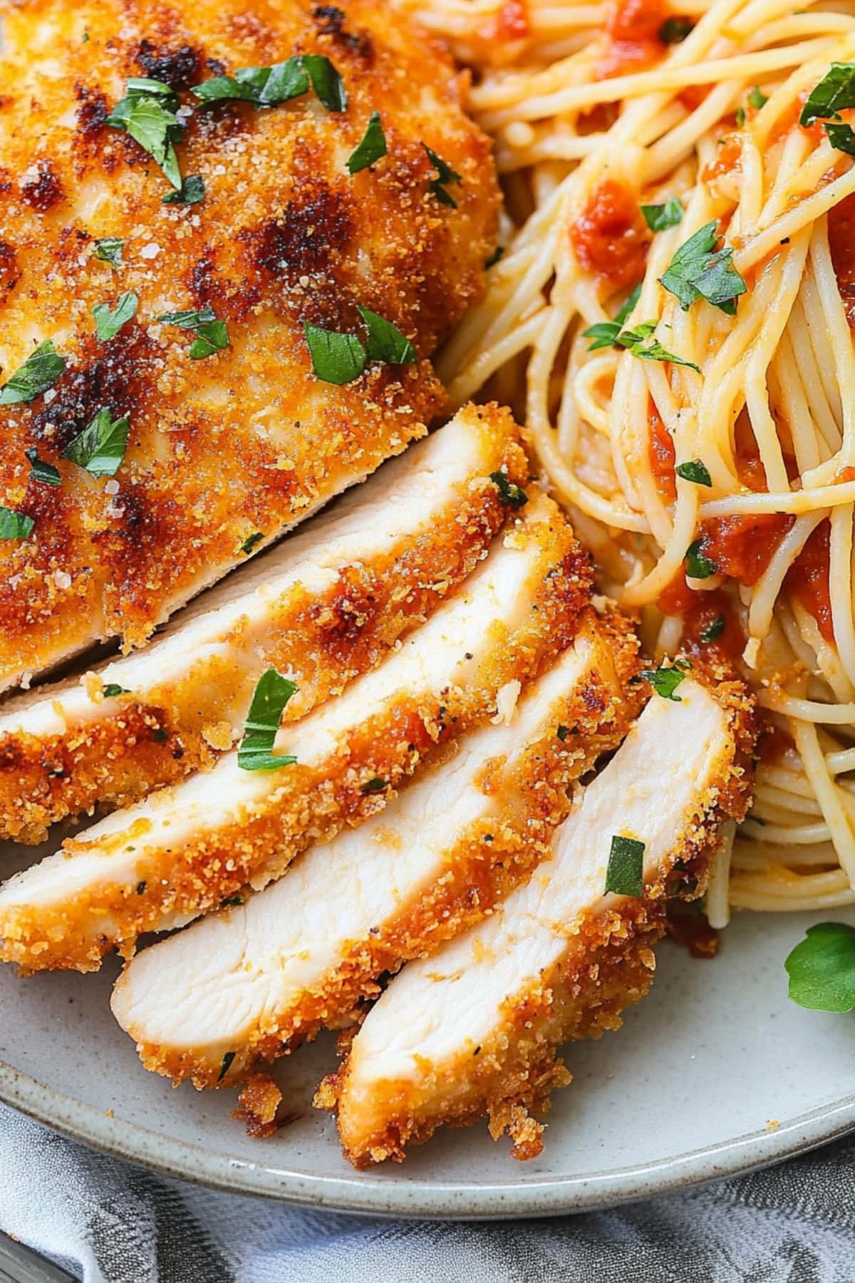 You’ll love the crunchy exterior and juicy chicken inside. Serve it with pasta and your favorite sauce for a complete meal. In just 55 minutes, you can have this tasty dish ready for your family or guests to enjoy.