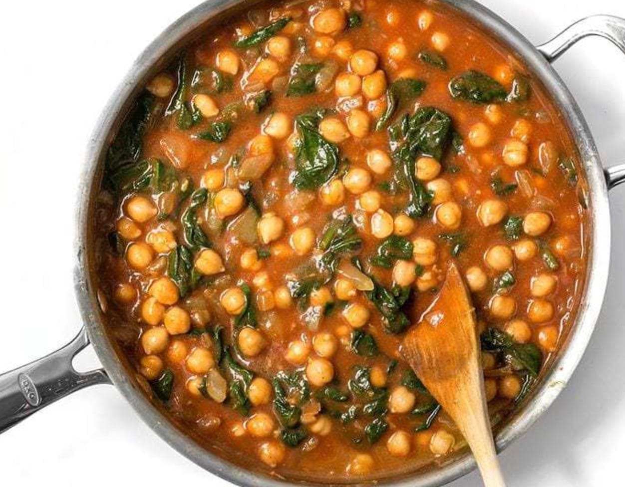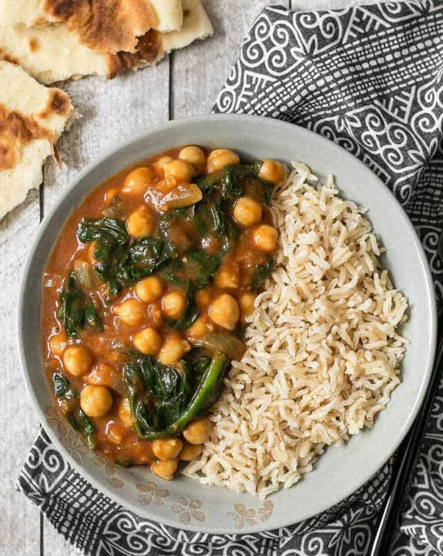 Curried chickpeas with spinach is a tasty and budget-friendly meal you can whip up in just 25 minutes. This dish packs a flavorful punch with curry powder, garlic, and ginger, while also being nutritious and filling. You’ll love how the chickpeas and spinach come together in a rich tomato sauce.