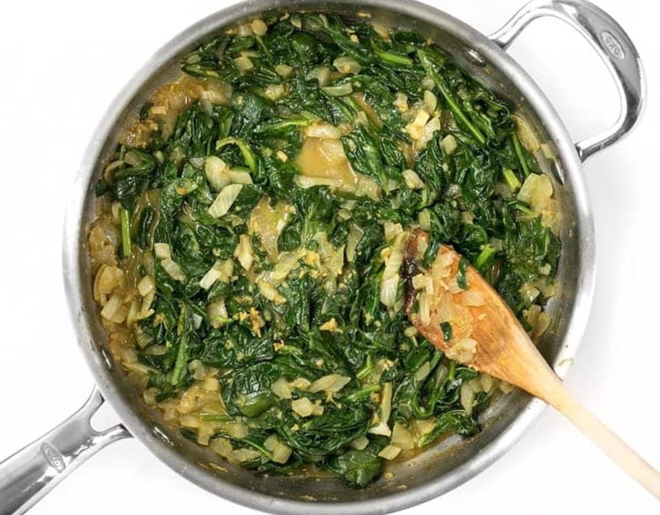 If you’re using fresh spinach, pour in 1/4 cup of water and add the spinach. Cook until it wilts. Skip the water if you’re using frozen spinach.