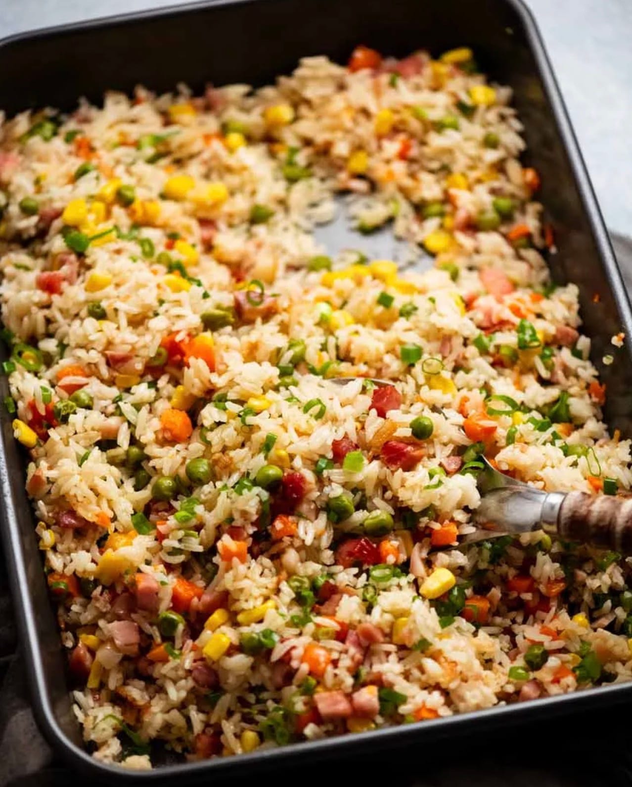 Are you tired of complicated fried rice recipes? Try this easy “Dump & Bake” Fried Rice! It’s a quick and simple way to make tasty fried rice without all the fuss. You can have a delicious Asian-inspired side dish ready in just 55 minutes with only 5 minutes of prep time.