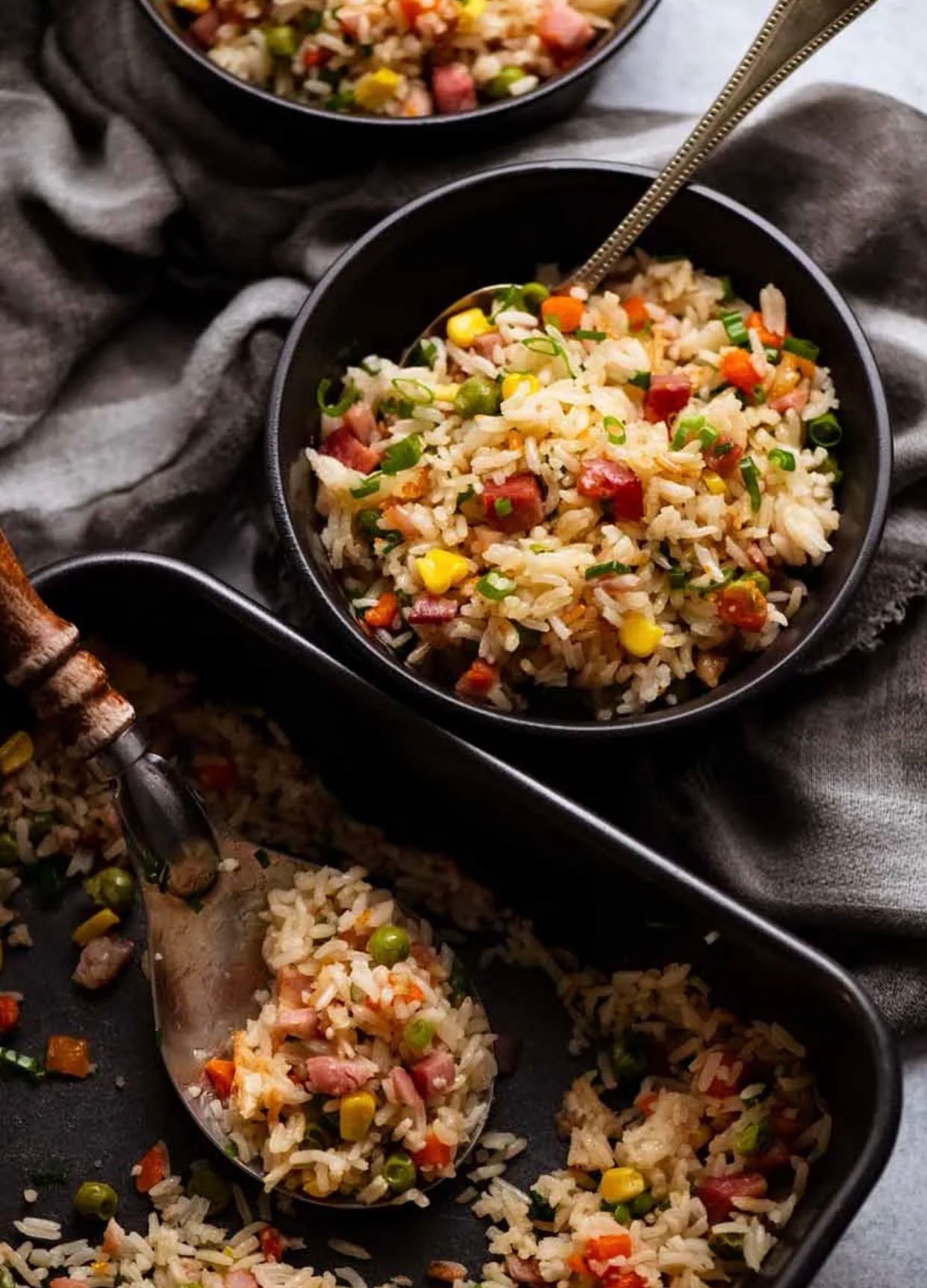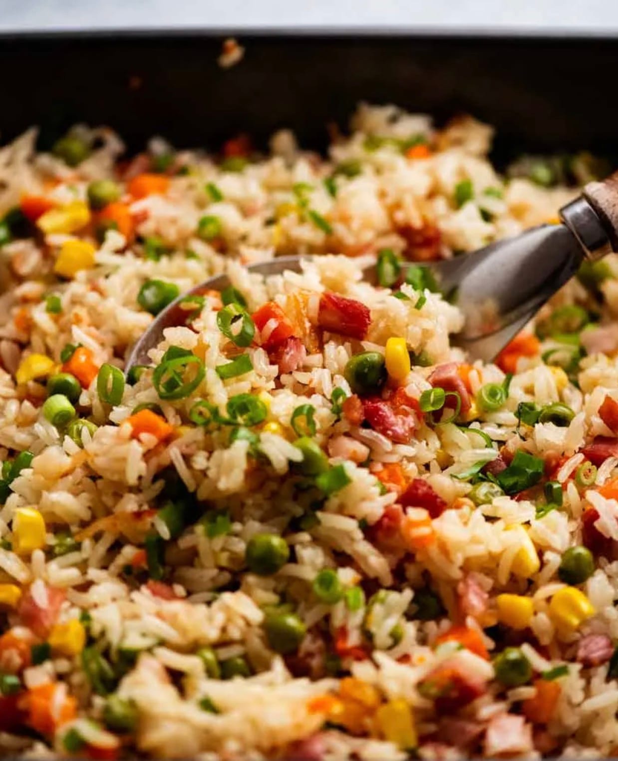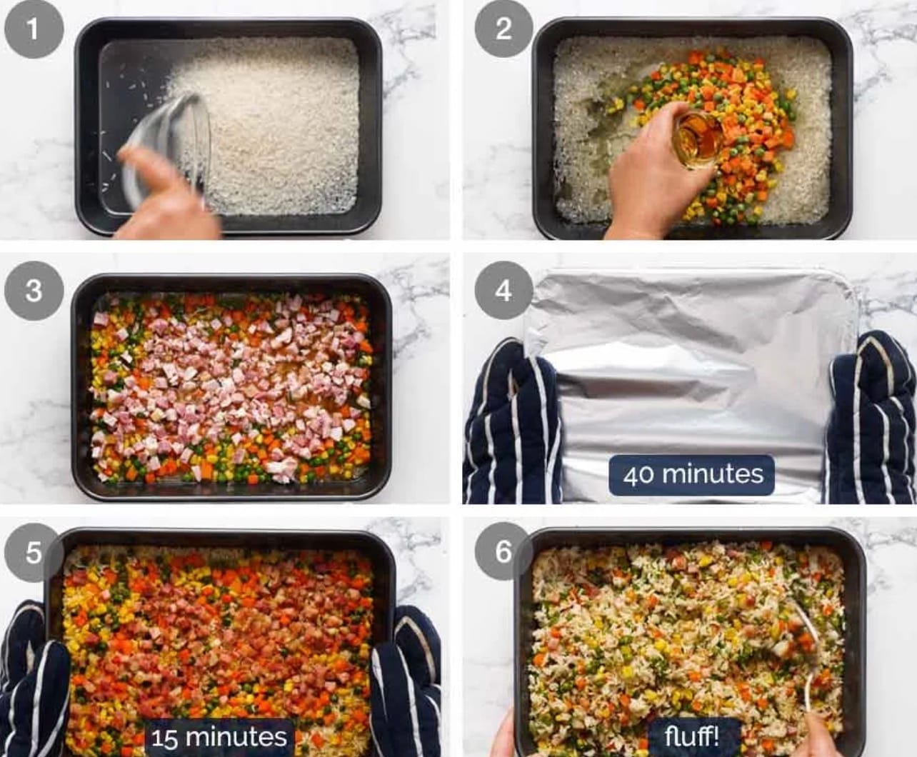 This recipe is perfect for busy days. You just mix uncooked rice, veggies, and seasonings in a baking dish, top with bacon, and let the oven do the work. The result is fluffy rice with golden bacon that tastes like it came from a wok. It’s so easy, you’ll want to make it again and again!
