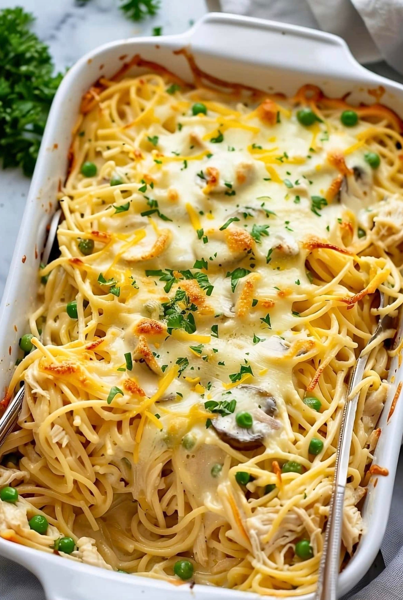 Let the dish cool for 5-10 minutes before serving. Garnish with fresh parsley and enjoy your comforting meal!
