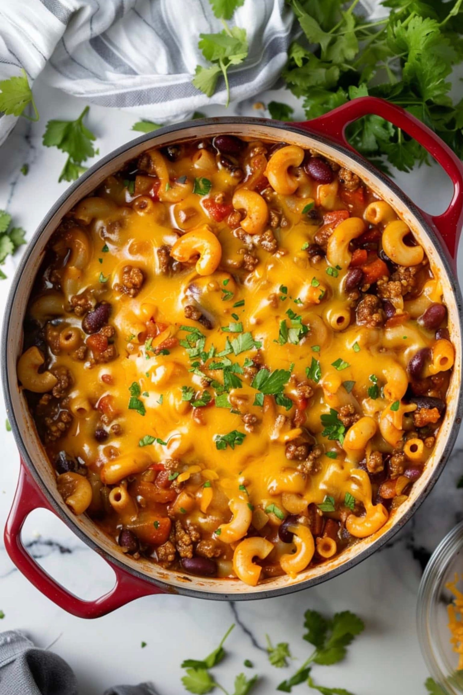 If you like your chili mac extra cheesy, feel free to add more shredded cheese on top before serving. A dollop of sour cream or a sprinkle of fresh cilantro can also add a nice touch.