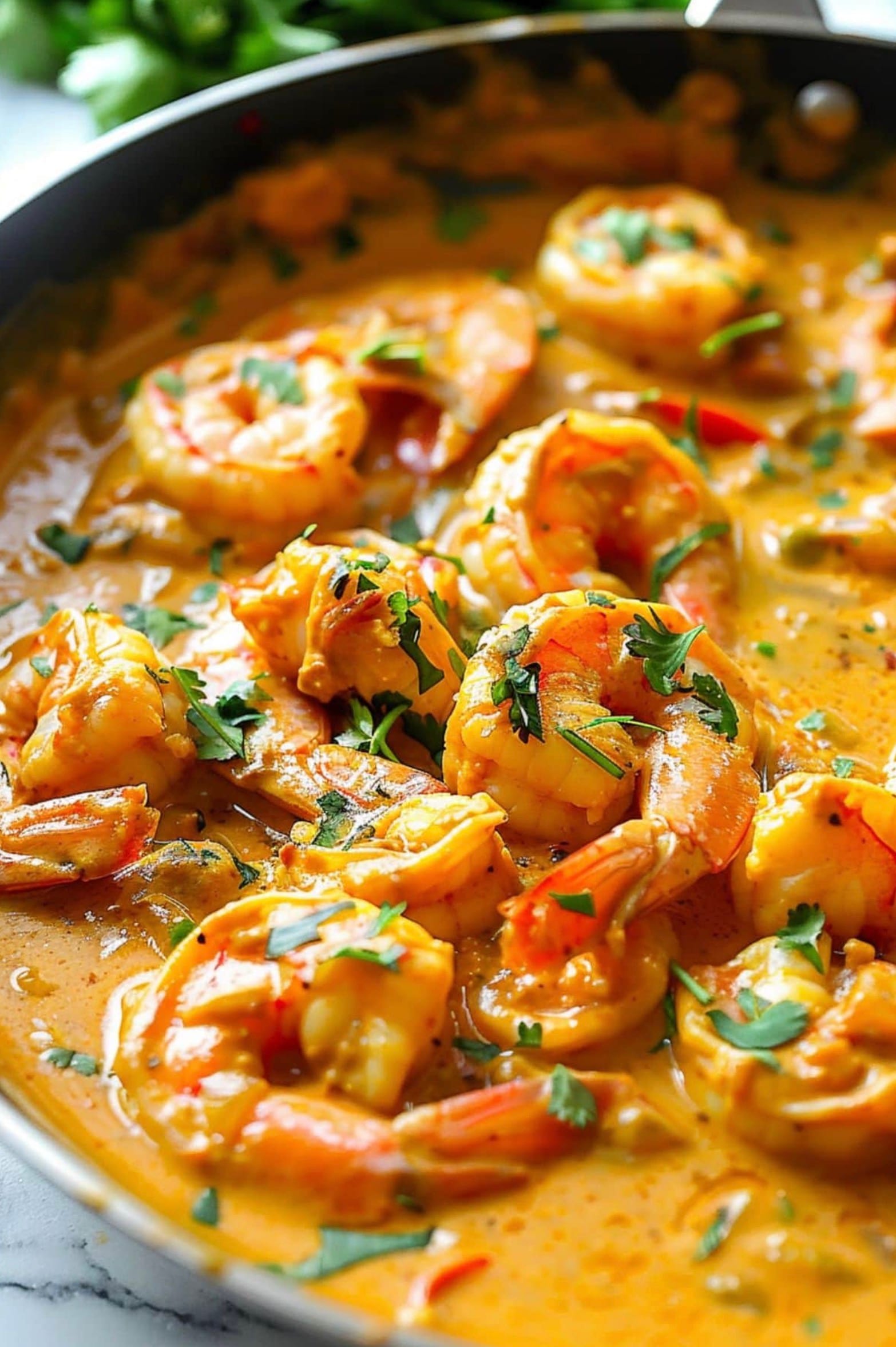 Cook for 2 more minutes until shrimp turn pink. Serve hot with cilantro and rice.