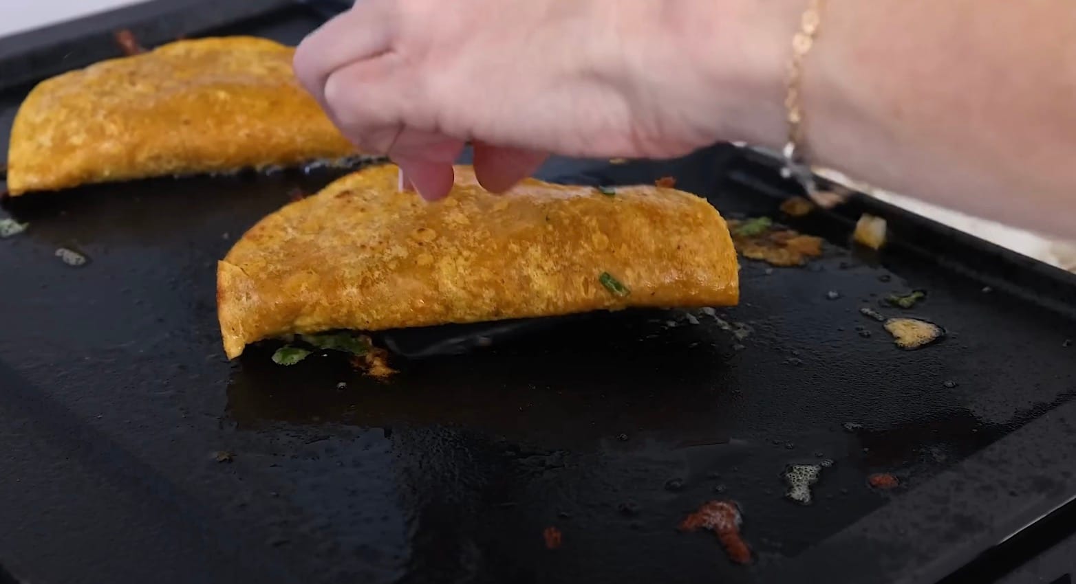 Fold the tacos in half and fry until crispy.
