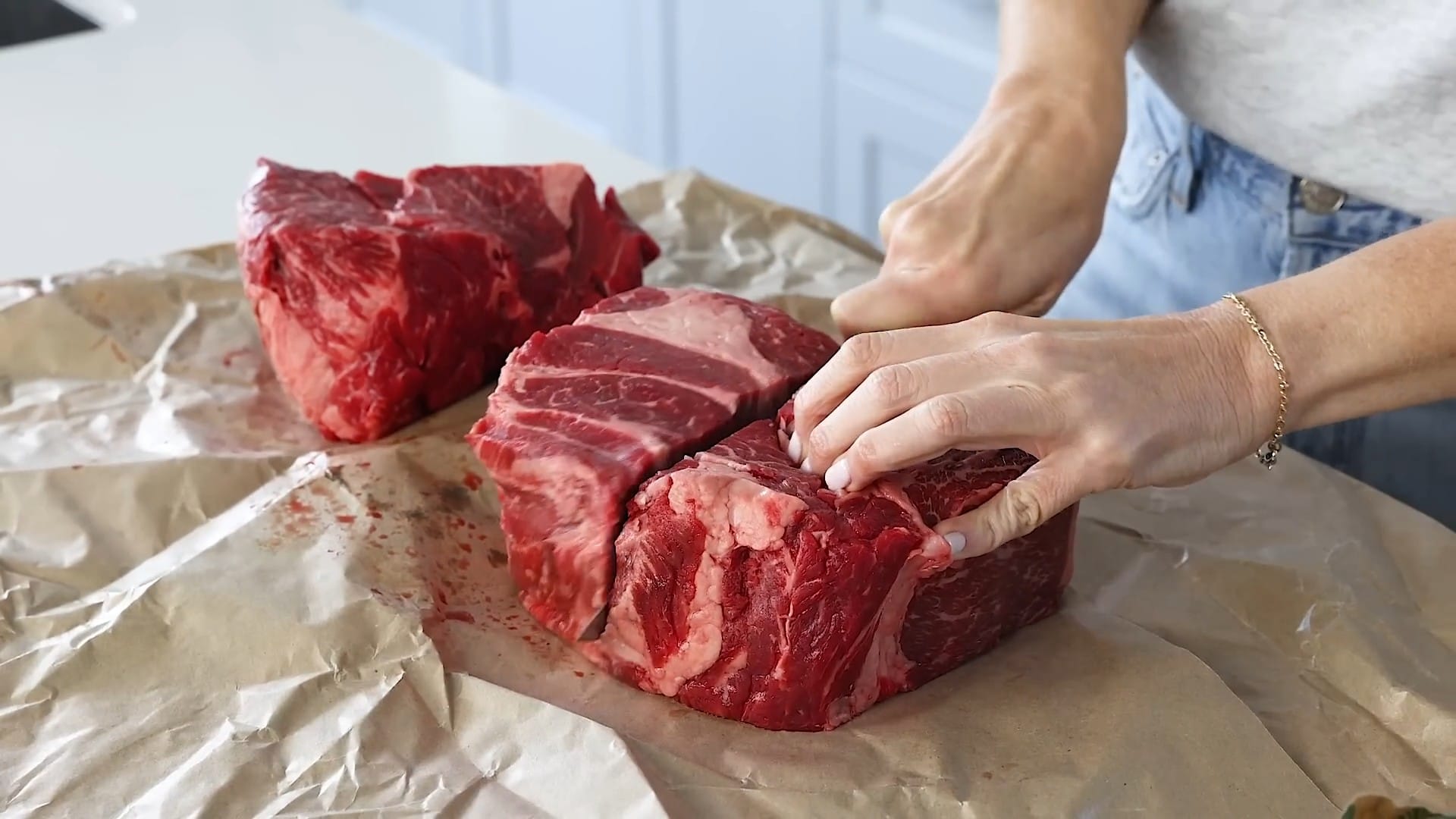 Cut the beef chuck roast into 3-4 inch chunks.
