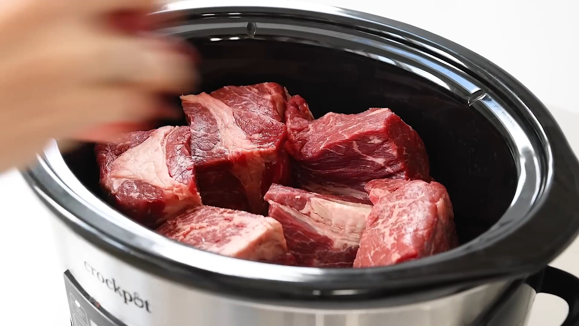 Place the beef chunks in the slow cooker.