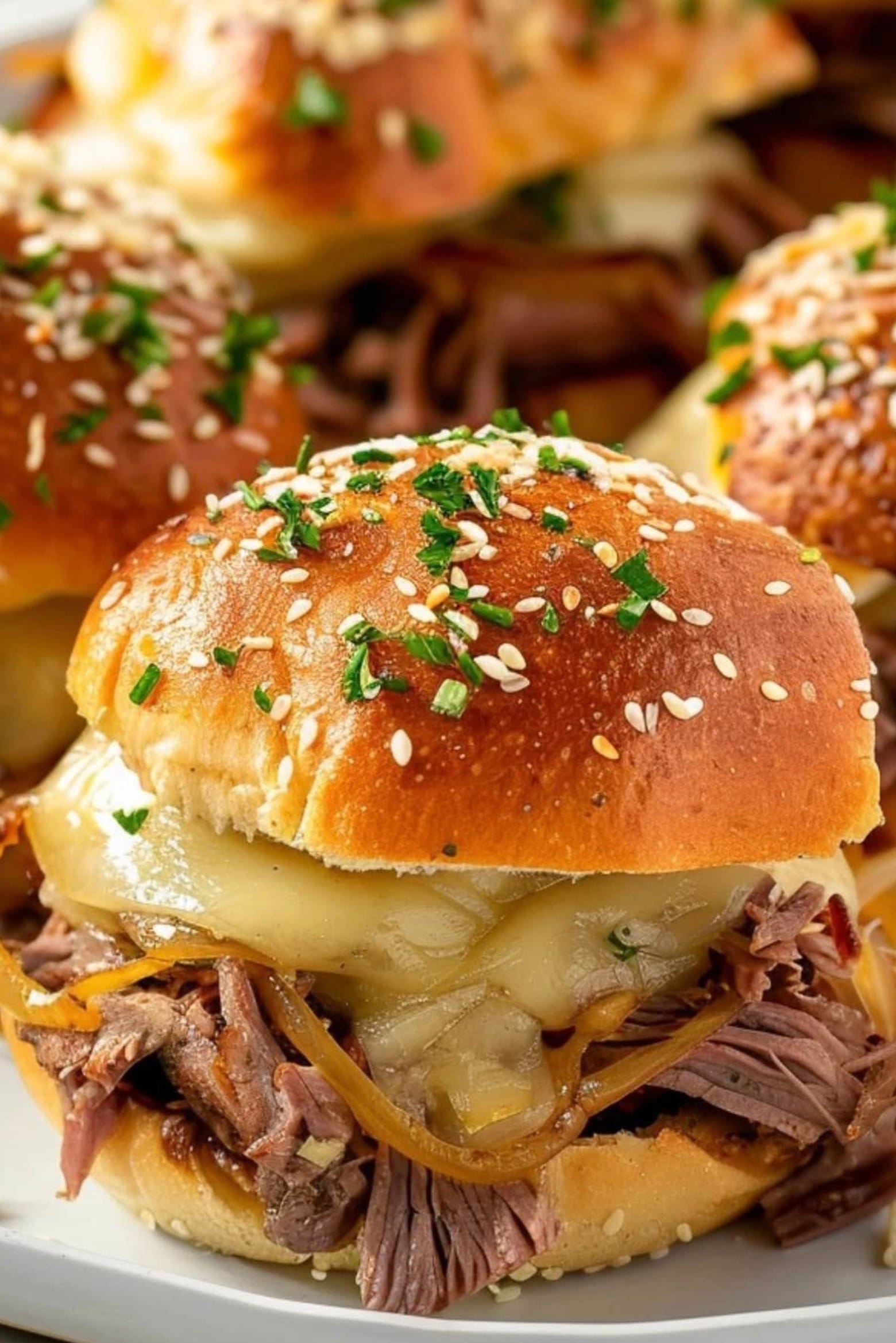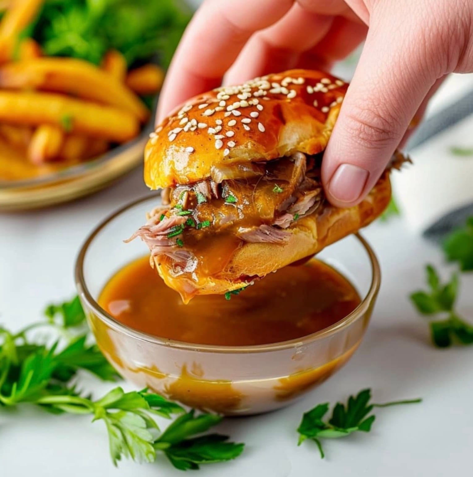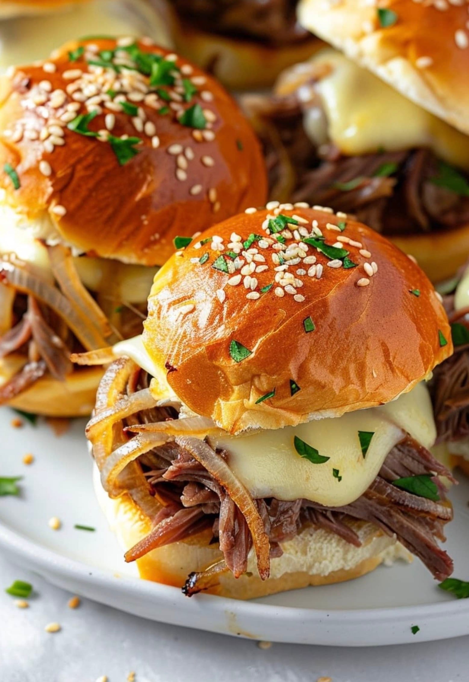 Pro tip: Serve the au jus on the side in small ramekins. This keeps the sliders from getting soggy and lets your guests dip as they please.
