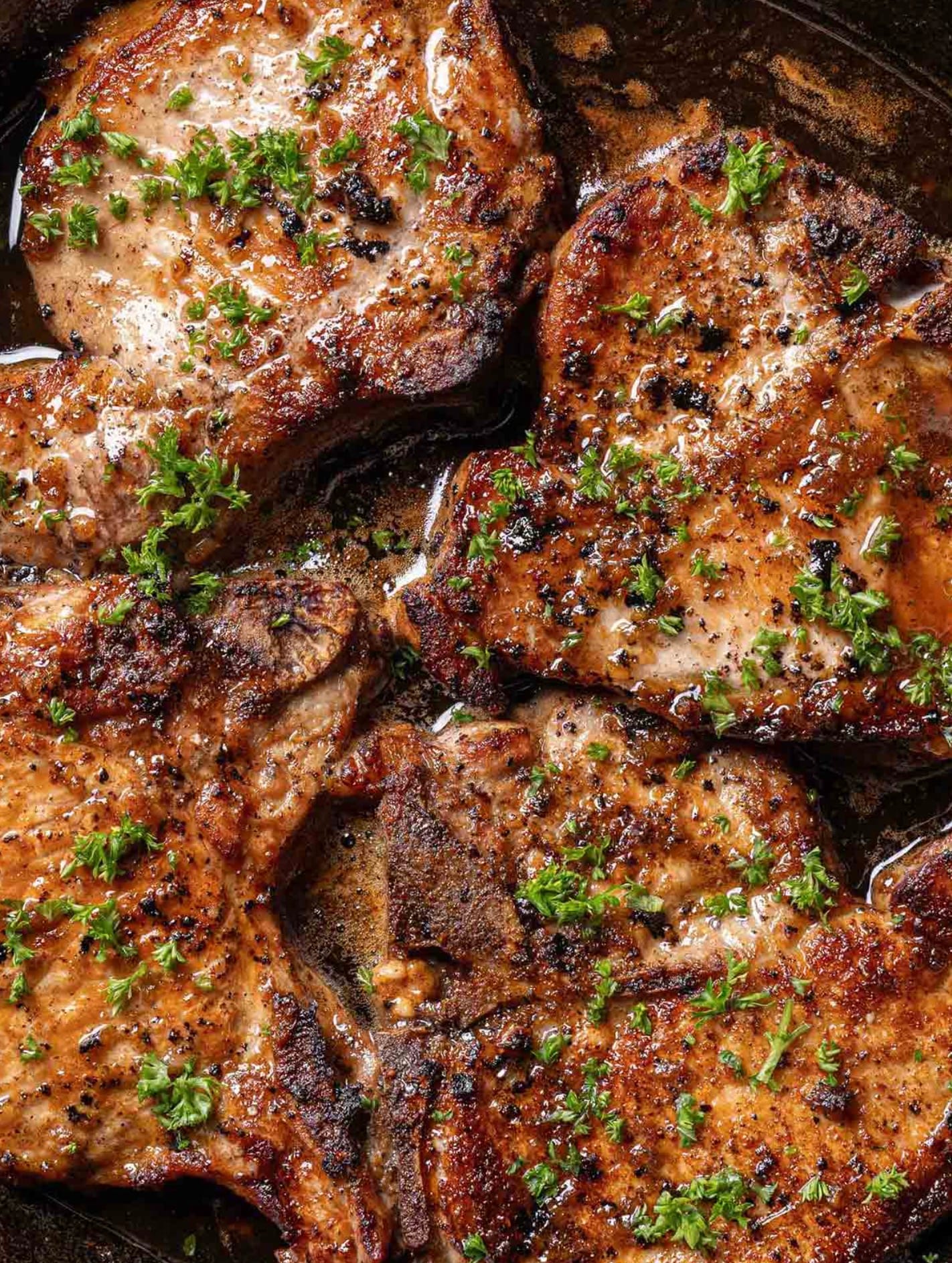 Add some parsley on top. Serve your yummy pork chops with veggies, rice, pasta, or salad. Enjoy your tasty meal!