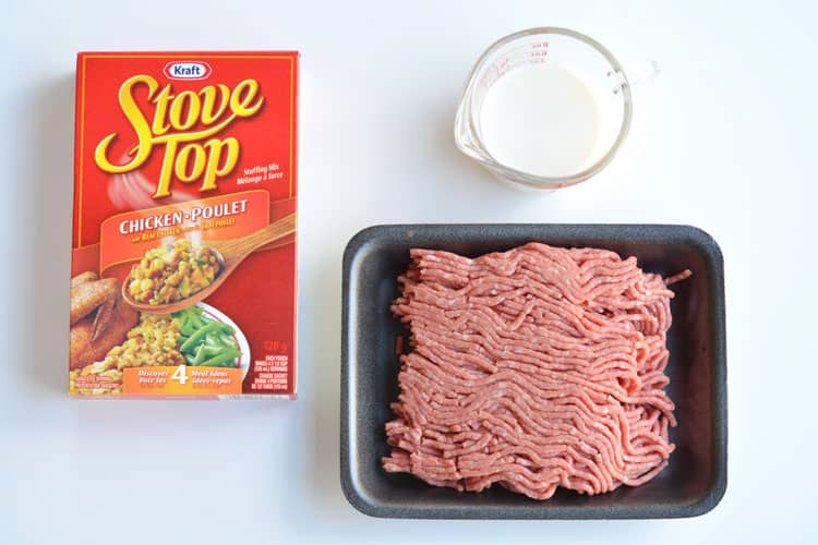 Grab a big bowl and mix the ground beef, stuffing mix, and milk. Use your hands to blend everything well.
