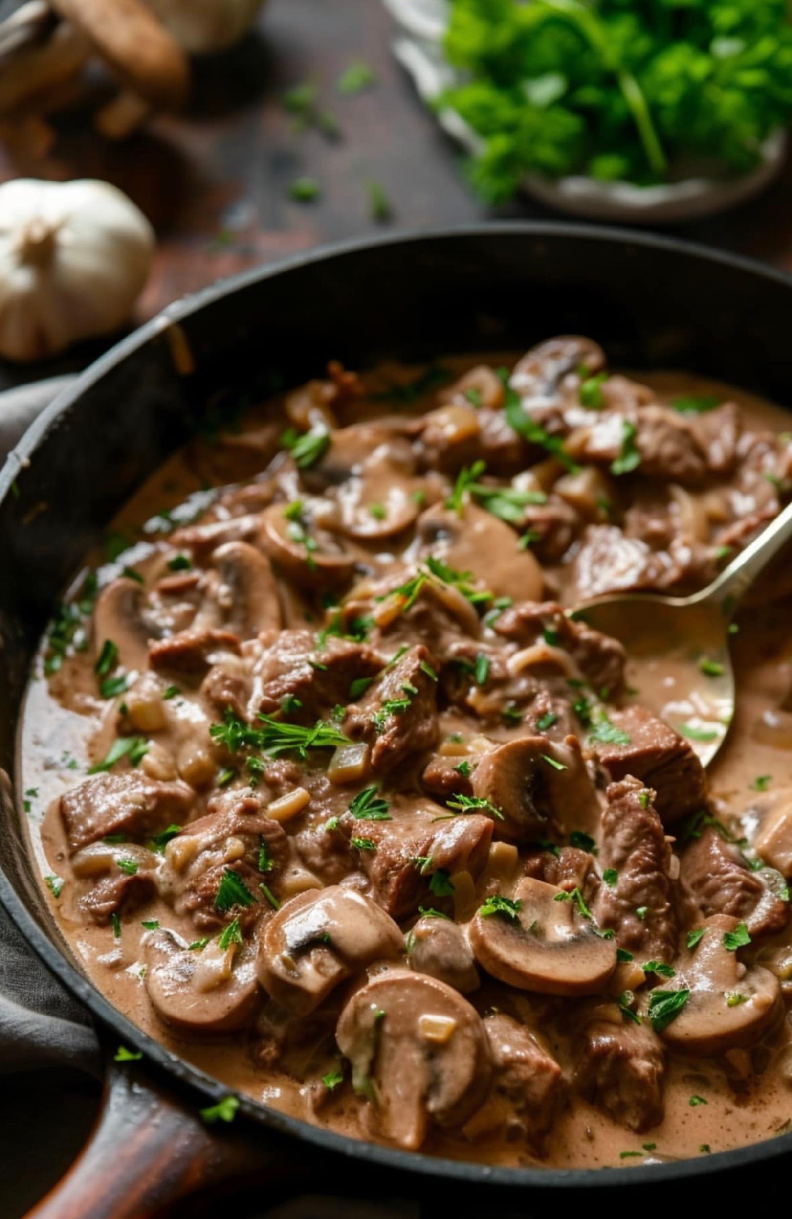 For the best beef stroganoff, slice your steak thinly against the grain. This makes the meat more tender and easier to eat. You can freeze the beef for 15-20 minutes before cutting to make slicing easier.