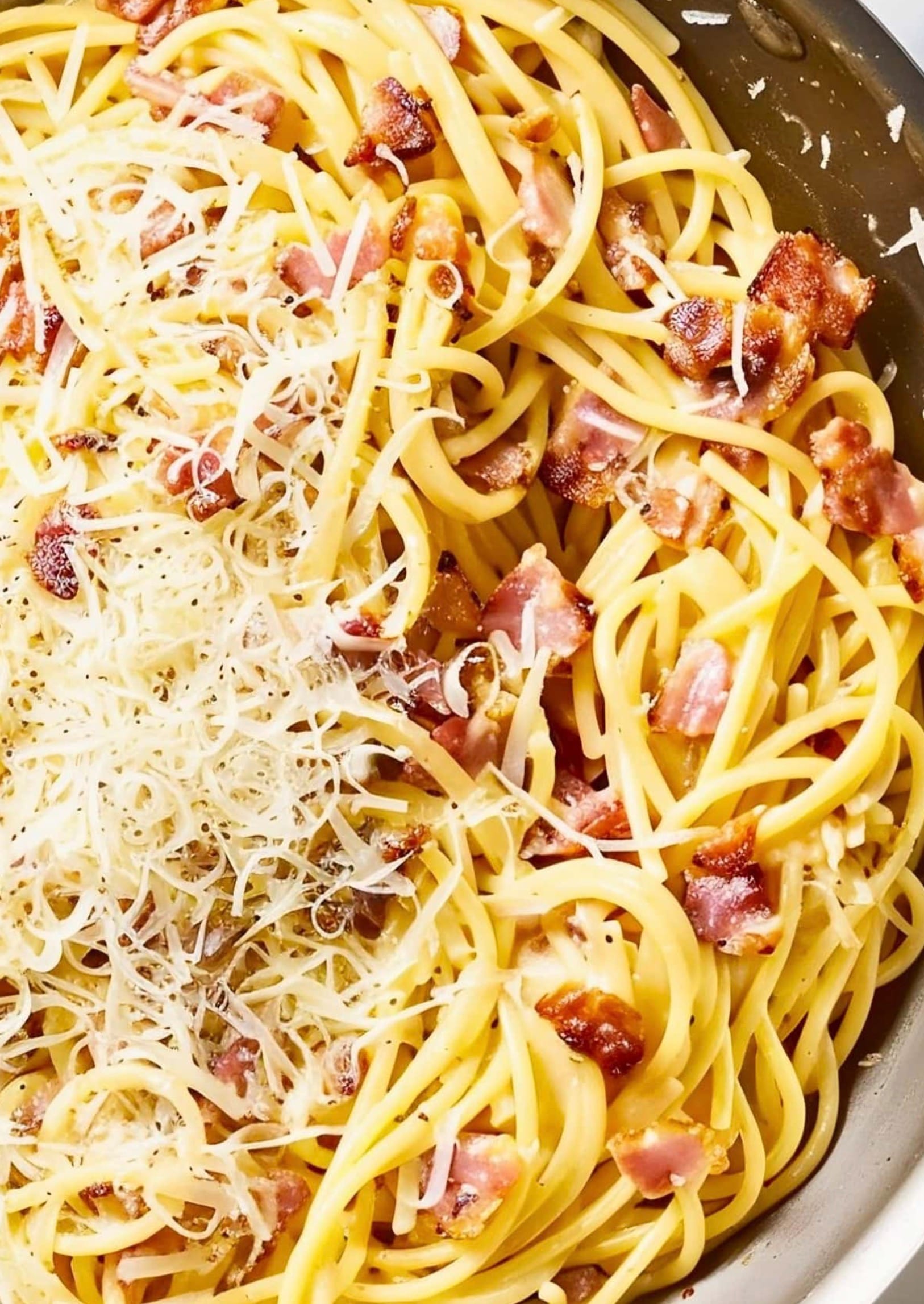 With these simple ingredients, you’ll create a rich and tasty meal in no time. The mix of eggs, cheese, and salty meat makes a sauce that hugs every strand of pasta.