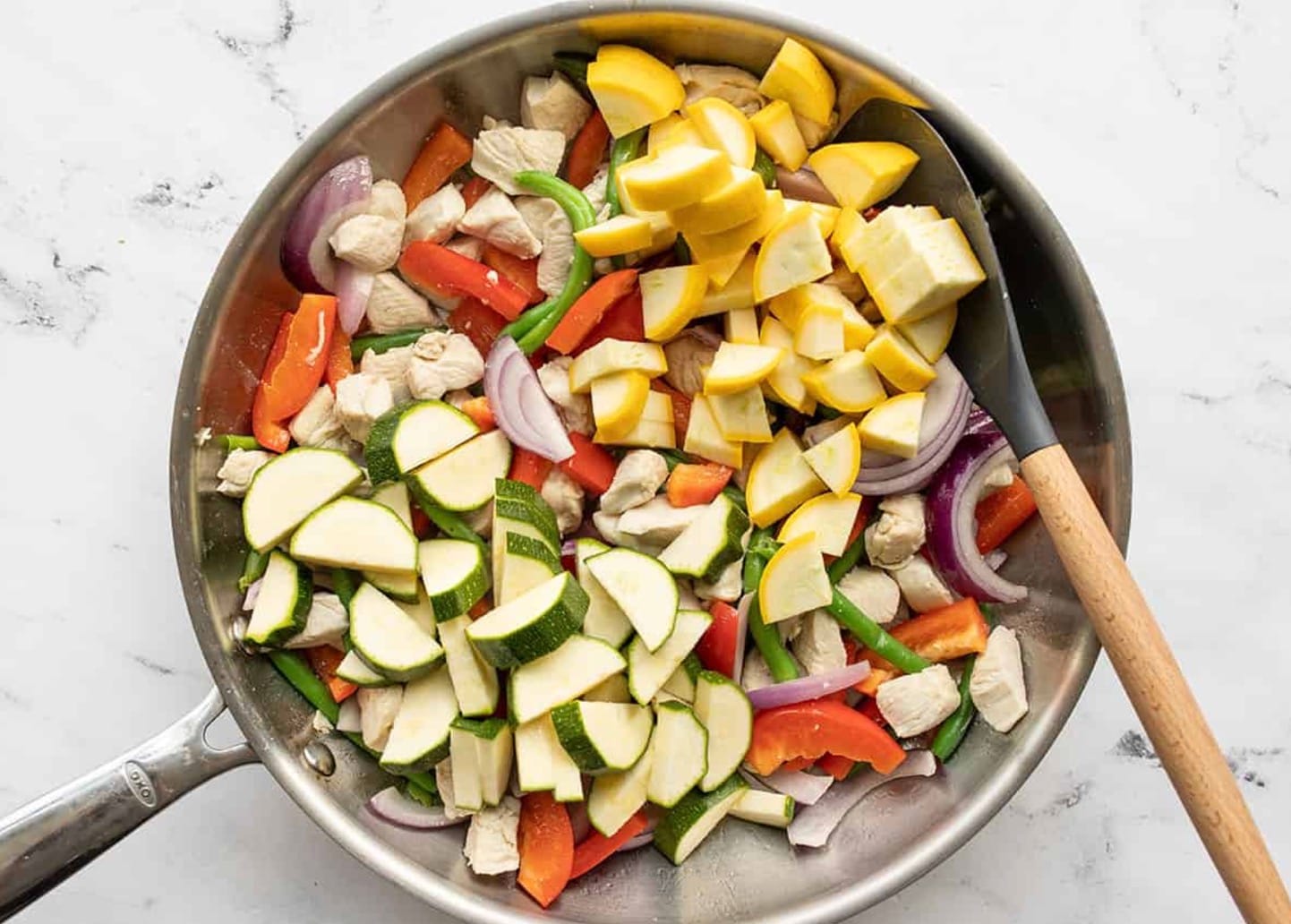 You can easily change up this recipe to fit your tastes or what’s in your fridge. Try swapping the chicken for tofu or shrimp for a fun twist. Don’t have zucchini? Use eggplant or more squash instead.