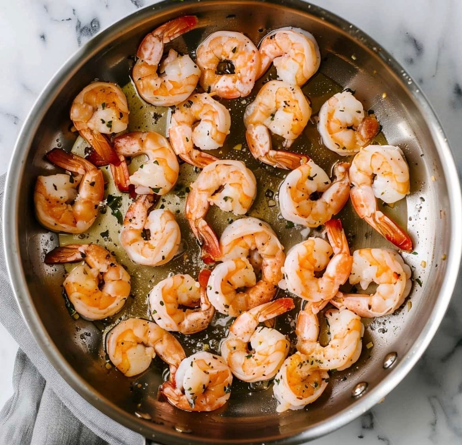 Cut the amount of pasta in half and double the shrimp. This step lowers the carbs and ups the protein. You can also add more veggies like zucchini noodles or sliced bell peppers to bulk up the meal without extra carbs.