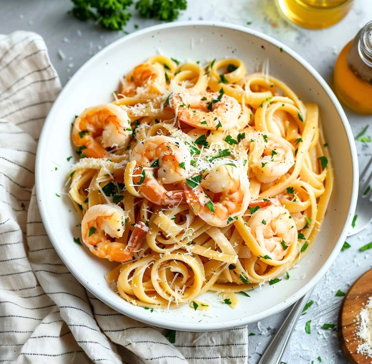 The dish is easy to make but looks fancy. It’s great for a weeknight dinner or when you have guests. You only need a few simple ingredients like shrimp, pasta, garlic, and butter. The lemon juice adds a nice zesty kick. Give this recipe a try – your taste buds will thank you!