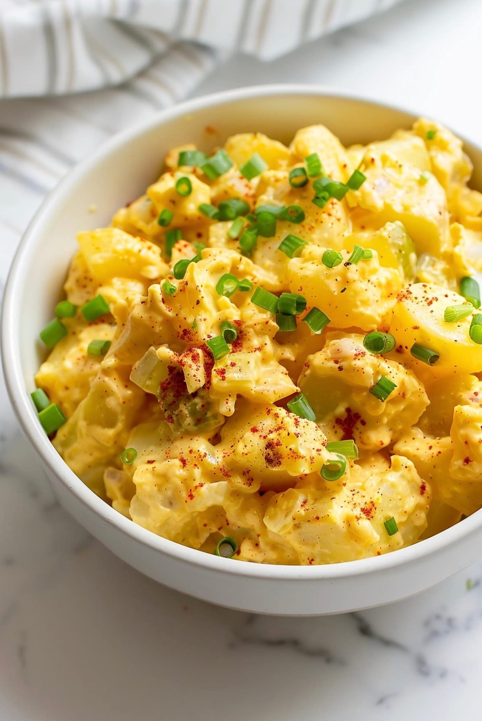 Don’t forget to chill the salad for at least 2 hours before serving. This helps all the tasty flavors come together. Enjoy your homemade Southern potato salad!