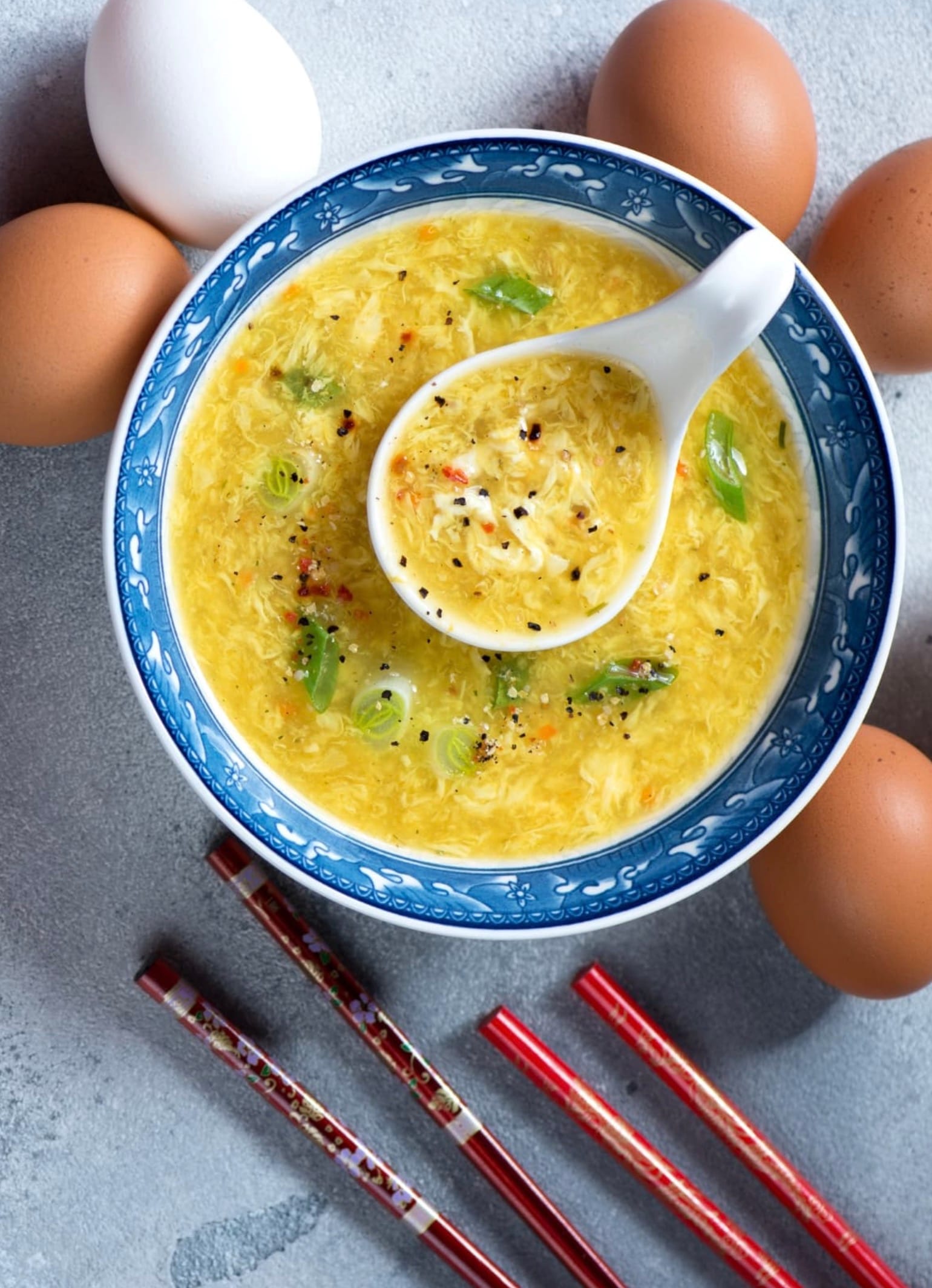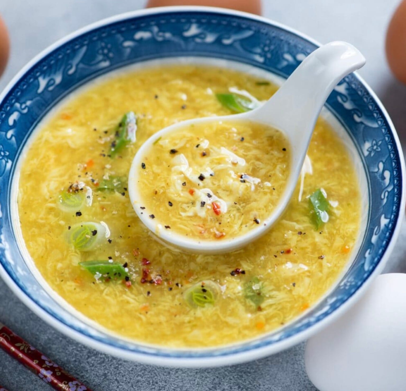 For a richer soup, use 2 egg yolks and 1 whole egg instead of 3 whole eggs. This makes the broth creamier.