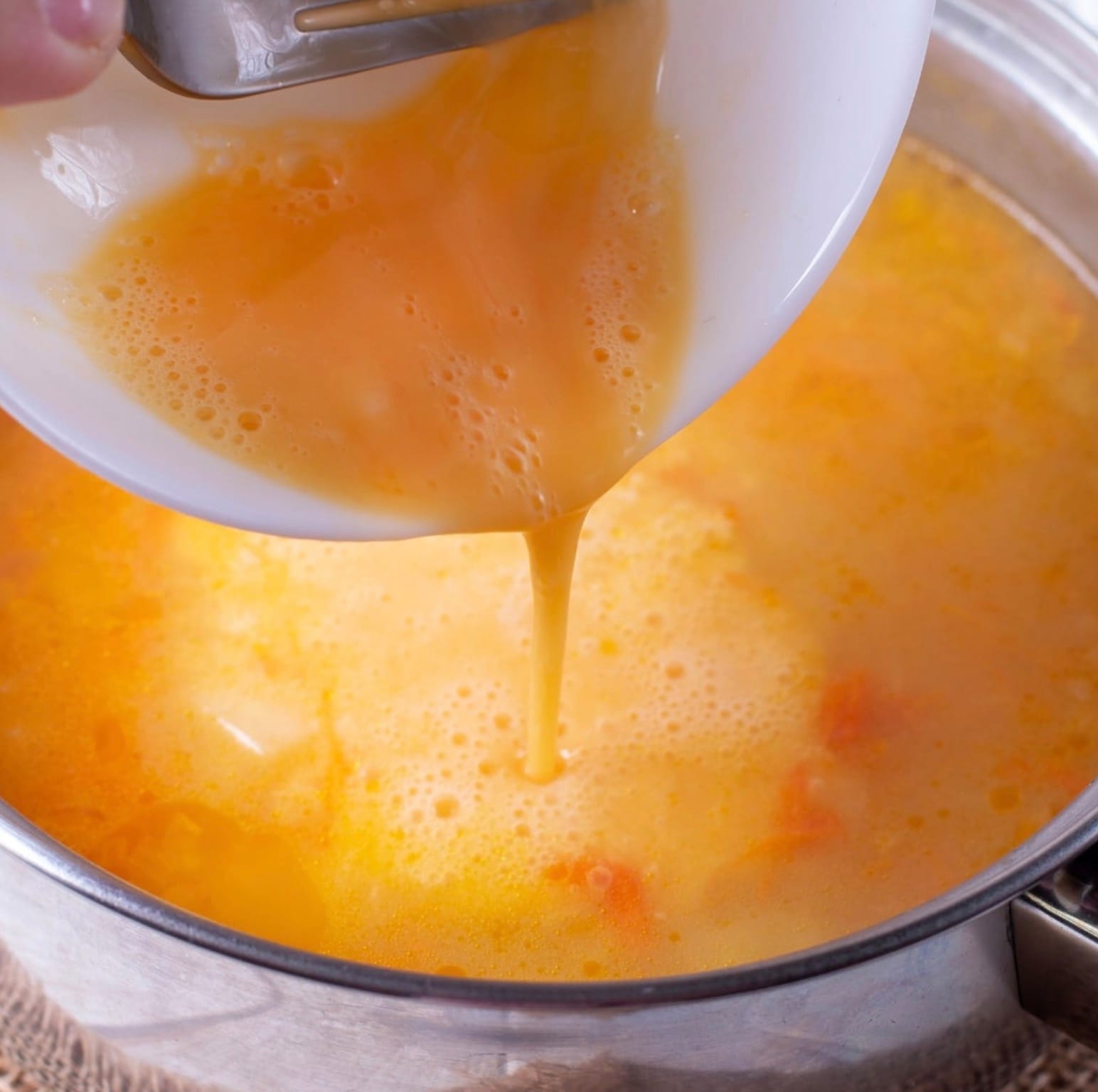 For the best egg ribbons, beat the eggs well before adding them to the soup. Pour them in a thin stream while stirring gently. This creates those lovely, delicate strands.