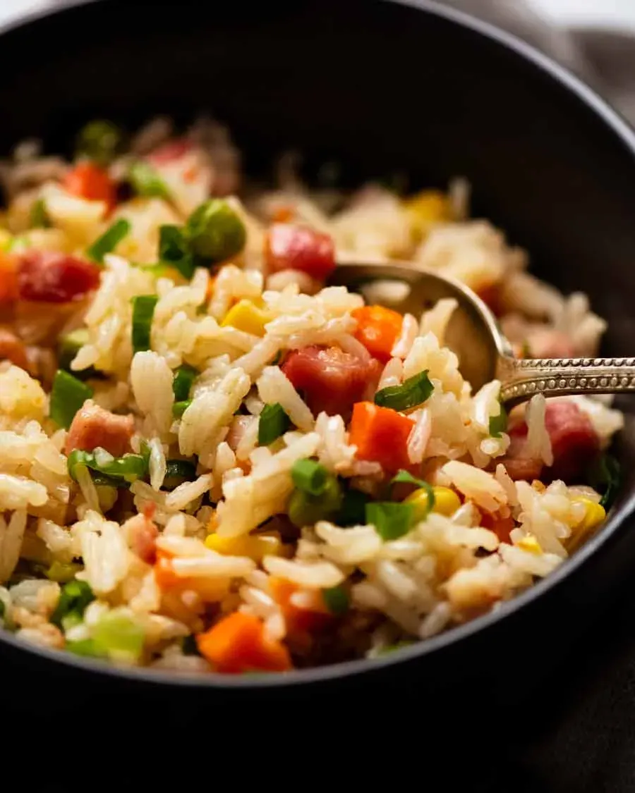 Are you looking for a super easy fried rice recipe? Emergency “Dump & Bake” Fried Rice is the answer to your prayers. You don’t need to plan ahead or use day-old rice. Just throw everything in a pan and pop it in the oven. In less than an hour, you’ll have fluffy, flavorful fried rice that tastes like it came from a wok.