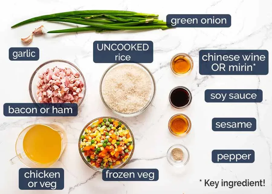 Here’s what you’ll need to make Emergency “Dump & Bake” Fried Rice: