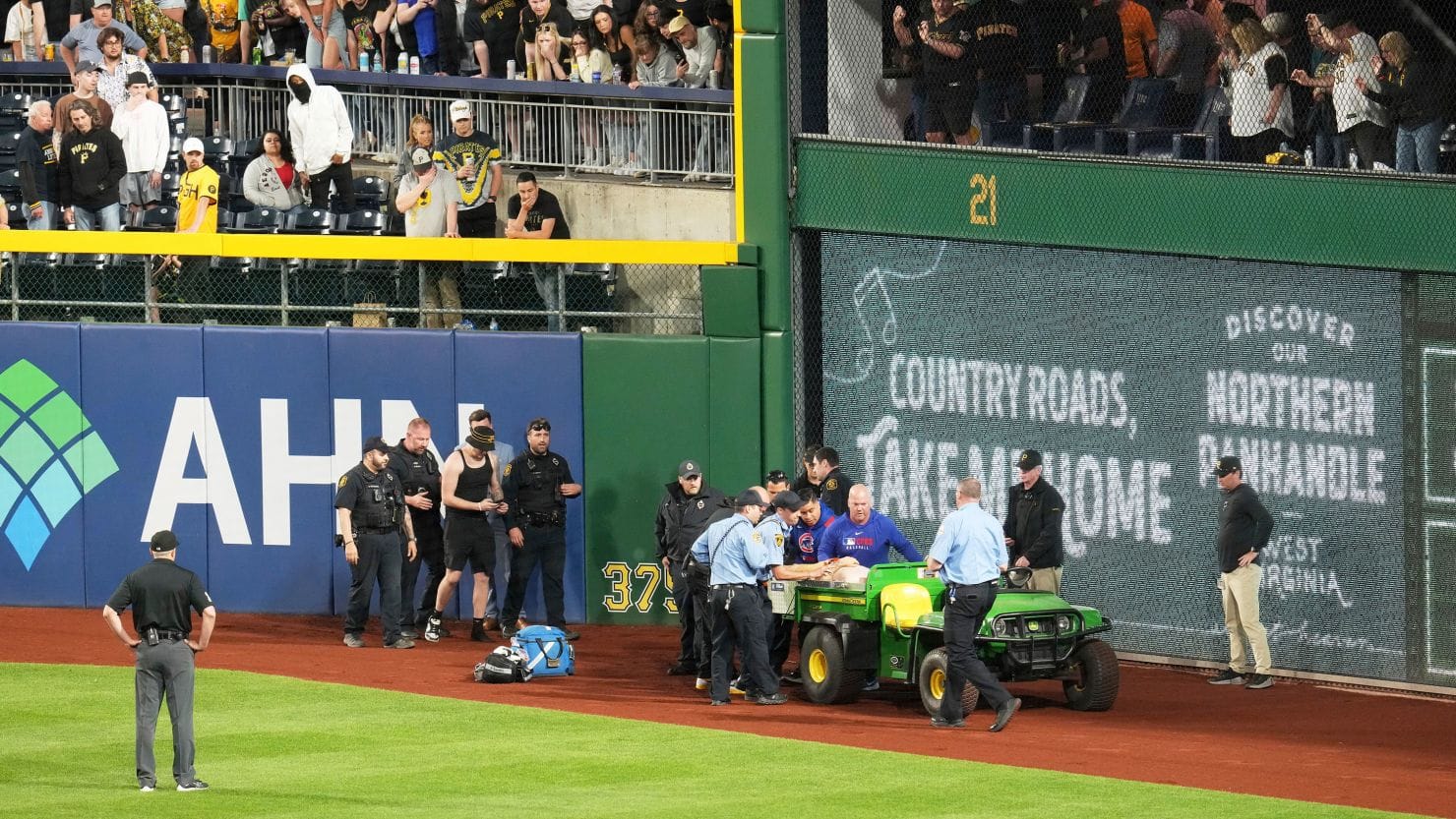 Trainers from both the Pirates and the Cubs joined EMS personnel to attend to the injured fan.