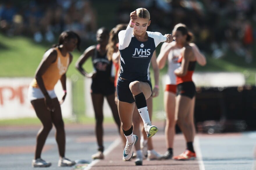 AB Hernandez dominated the competition, taking first place in both the girls’ high jump and triple jump. The transgender athlete also finished second in the long jump.