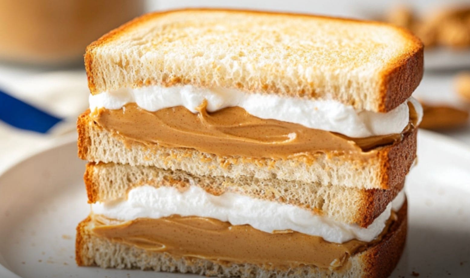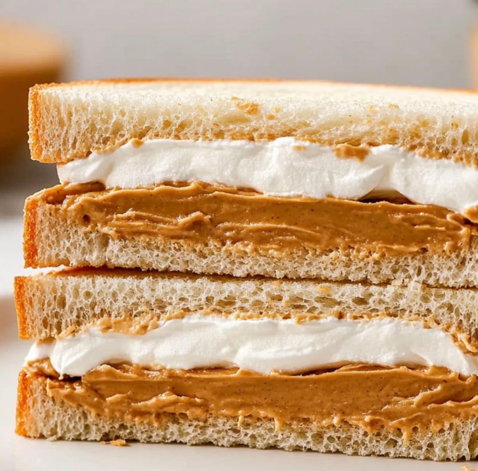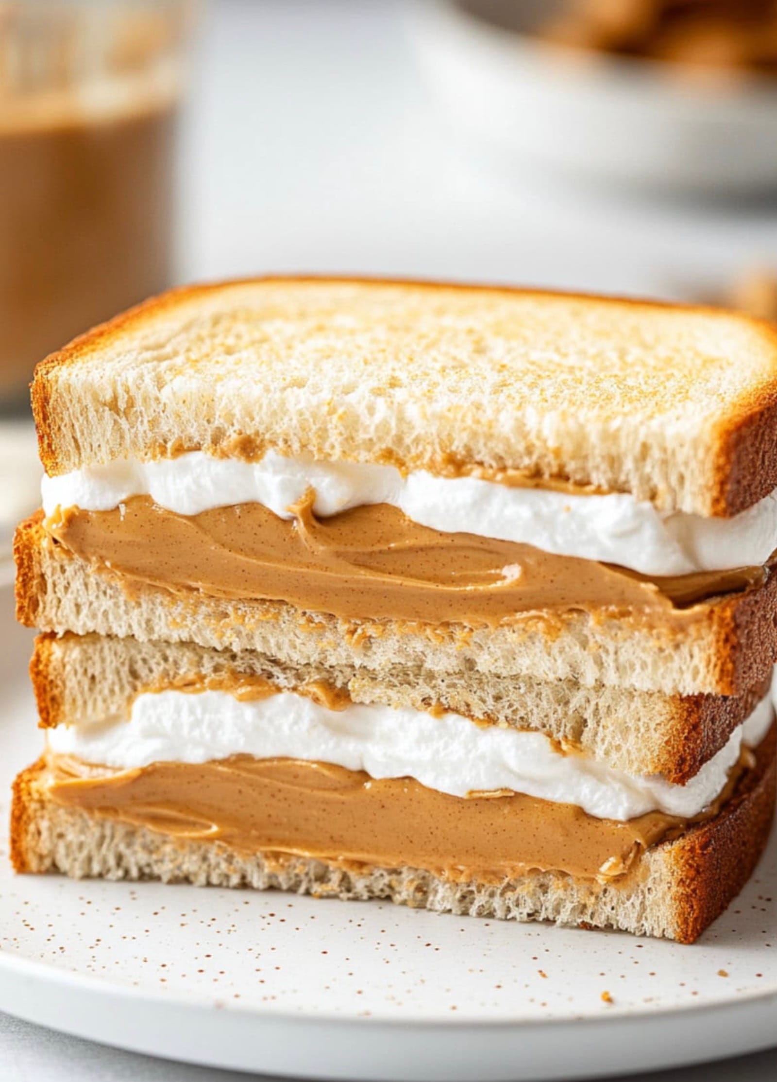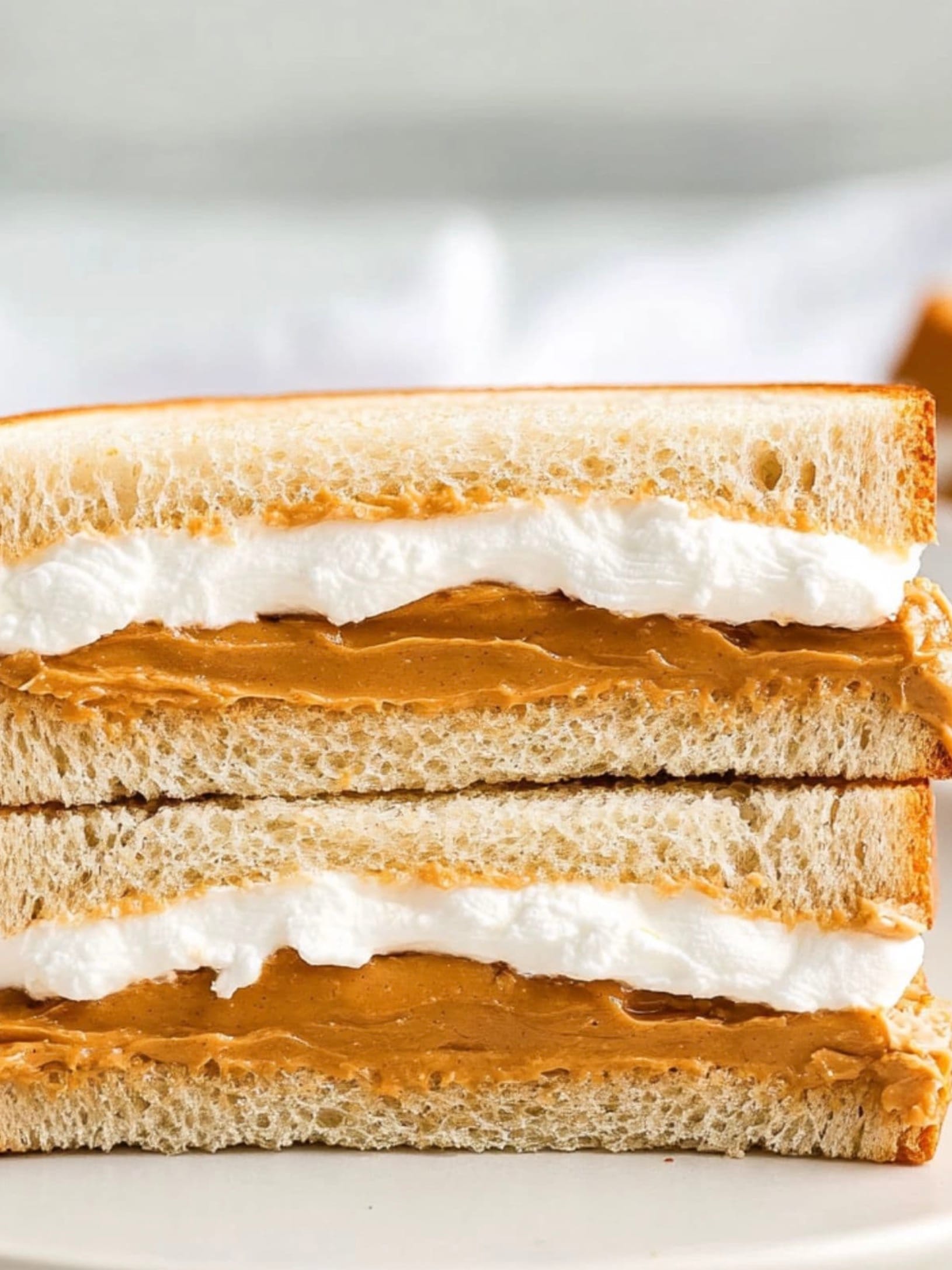 The amount of peanut butter and marshmallow fluff can be adjusted to your liking. If you prefer a thicker layer of filling, use 6 tablespoons of each. For a lighter sandwich, stick to 4 tablespoons.