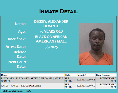 Dickey had reportedly received a probation sentence for a burglary charge in 2023, which was later reduced.