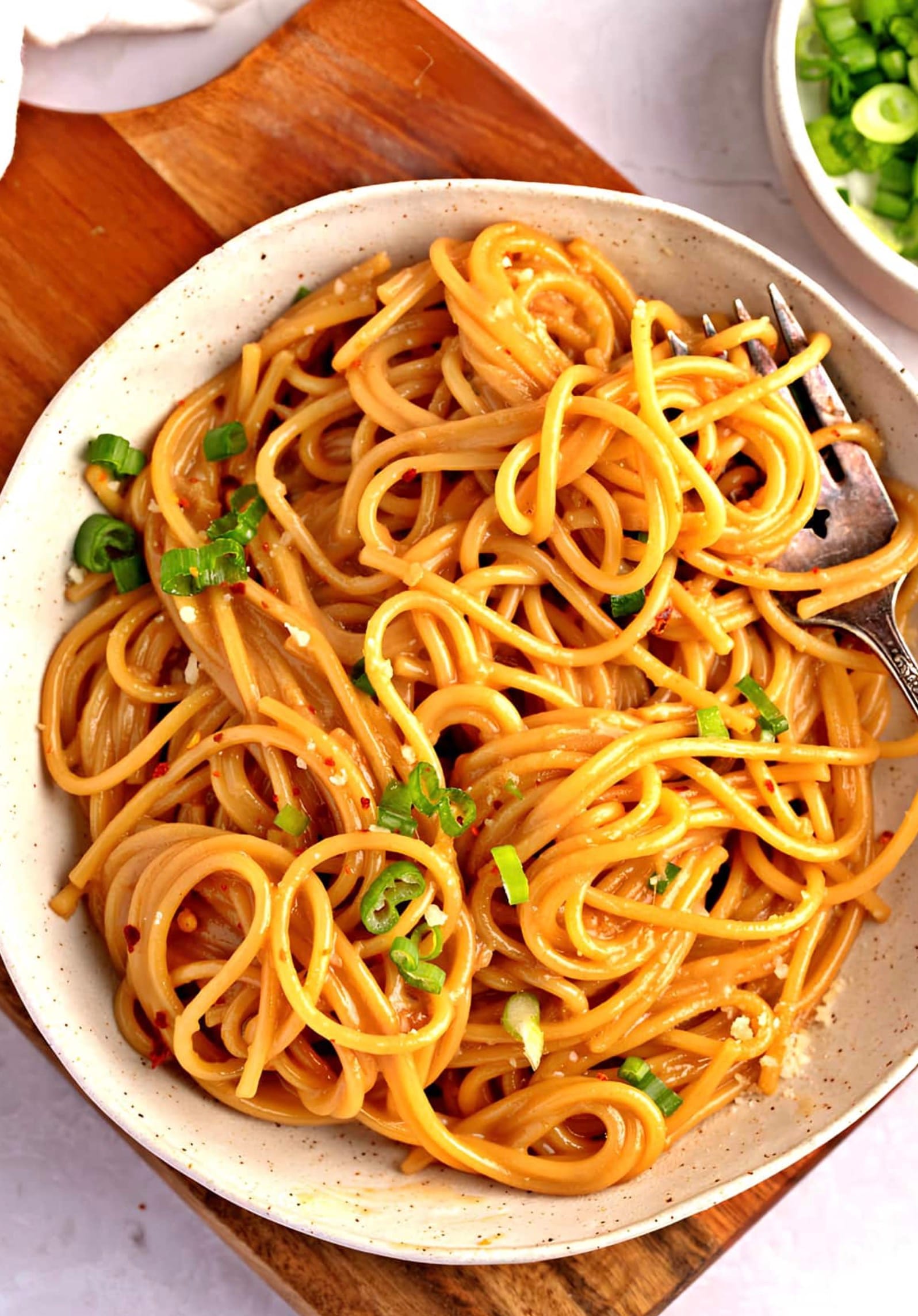 Green onions can be replaced with chives or regular onions. For heat, use red pepper flakes, sriracha, or your favorite hot sauce instead of cayenne. These swaps let you make tasty garlic noodles with what you have on hand!