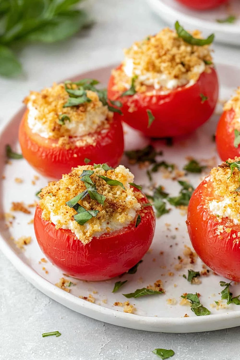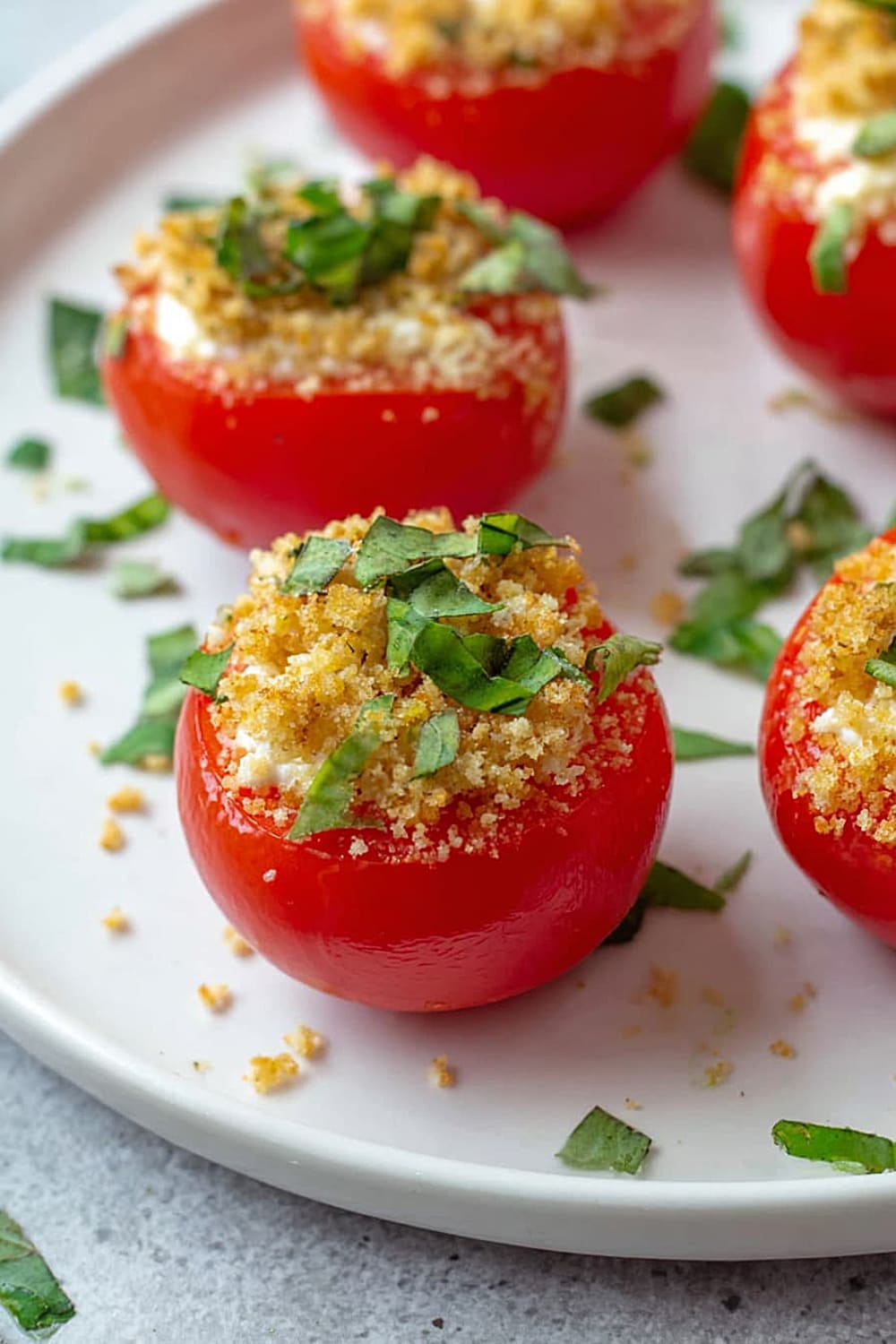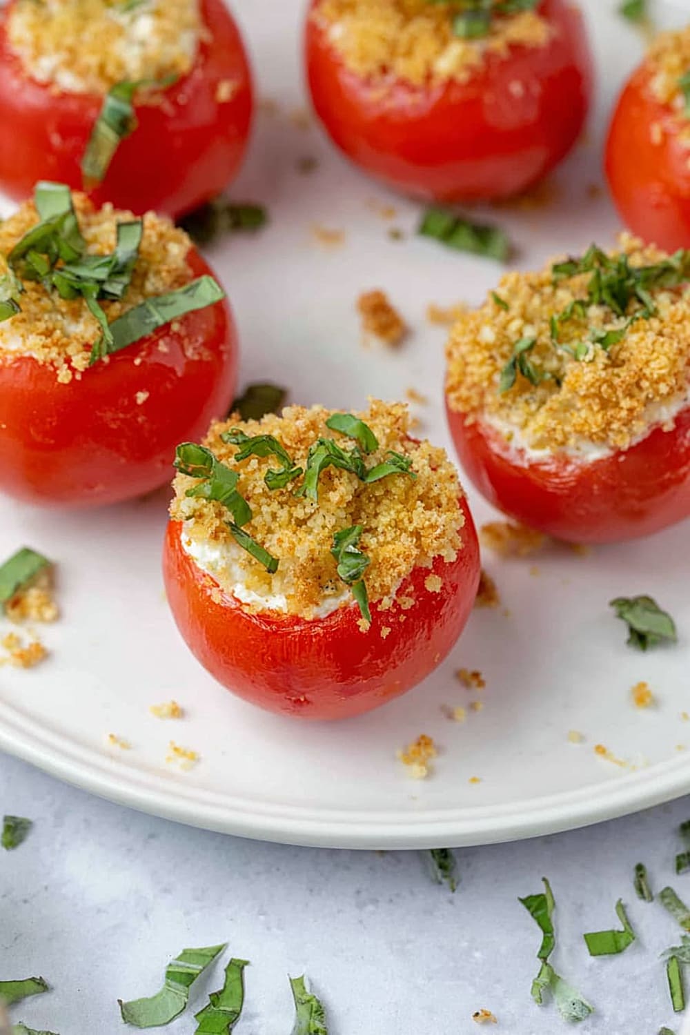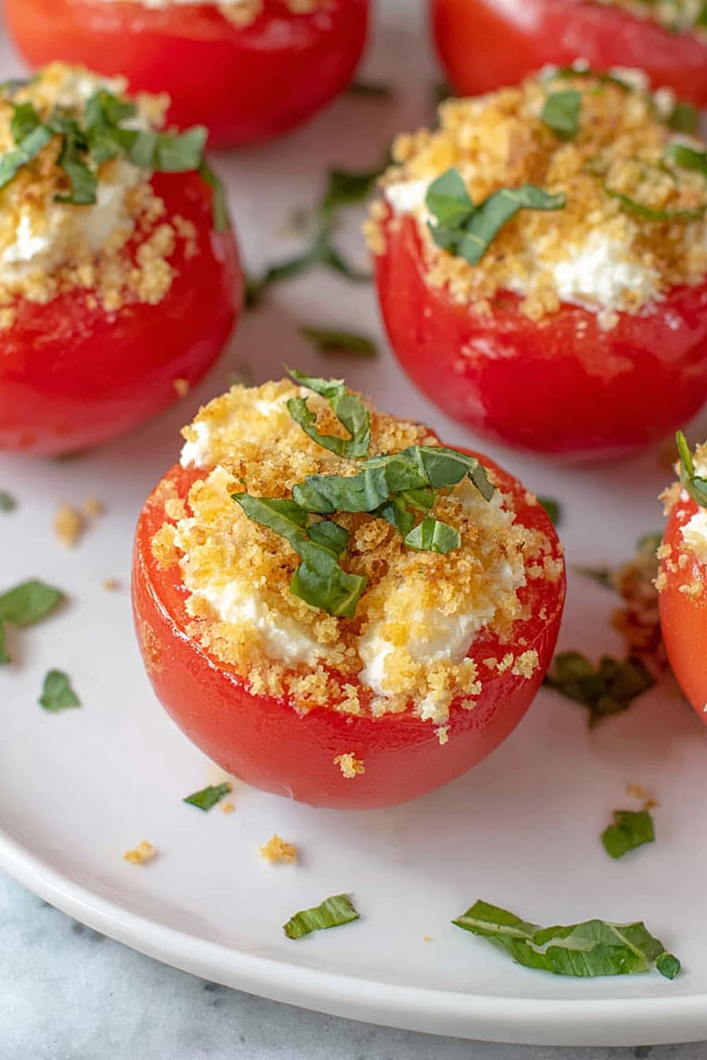 - 8 Sprinkle each filled tomato generously with the toasted panko breadcrumbs, pressing gently so they adhere to the cheese filling. Finish with a sprinkle of fresh chopped basil for that pop of color and fresh herb flavor. Serve immediately for the best texture contrast.