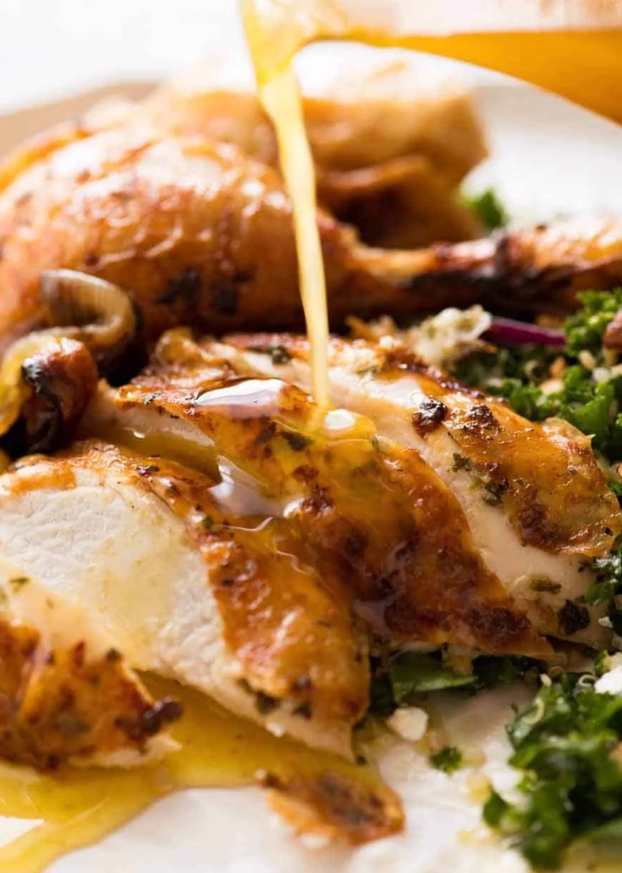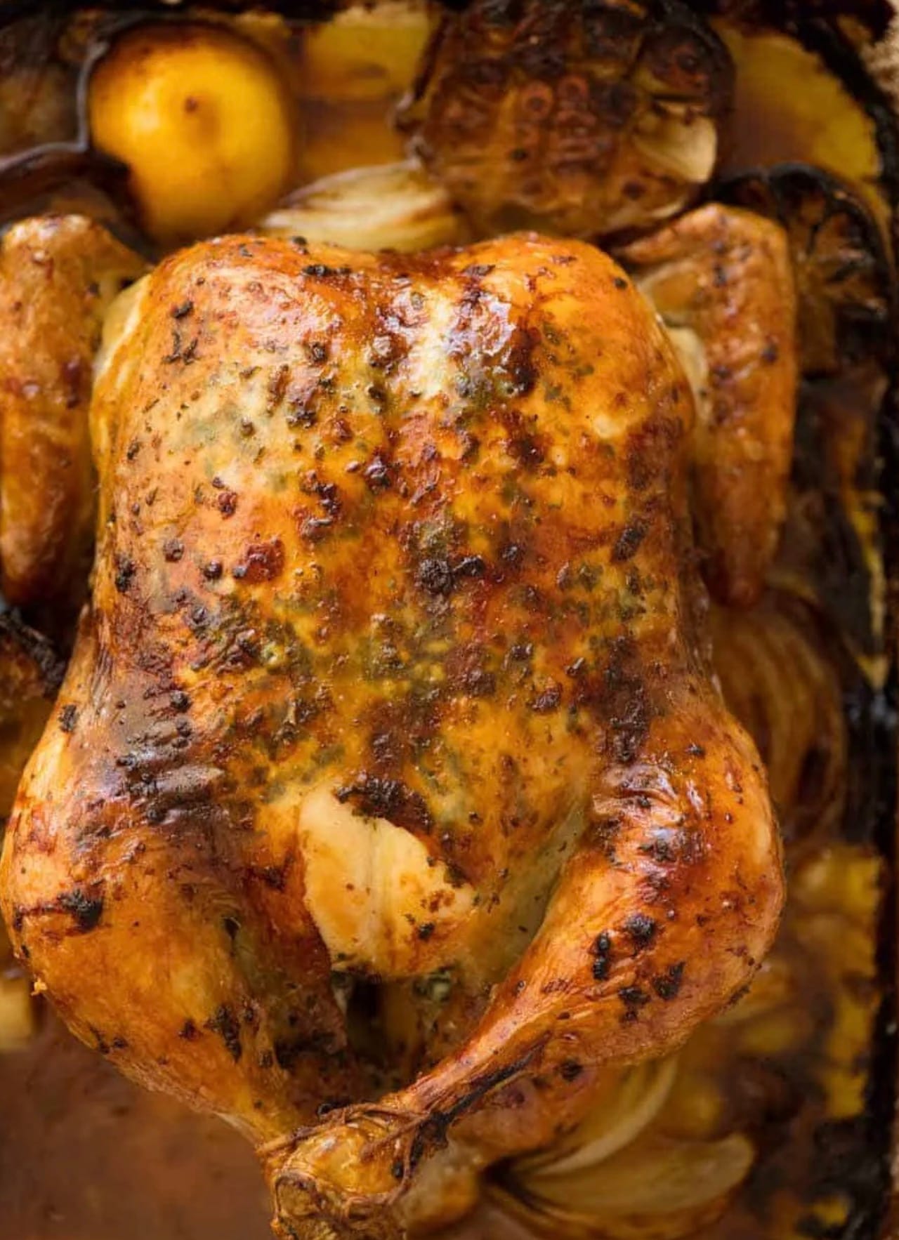 Don’t forget to baste! Spooning the juices over the chicken keeps it moist and adds flavor. Do this twice during cooking.