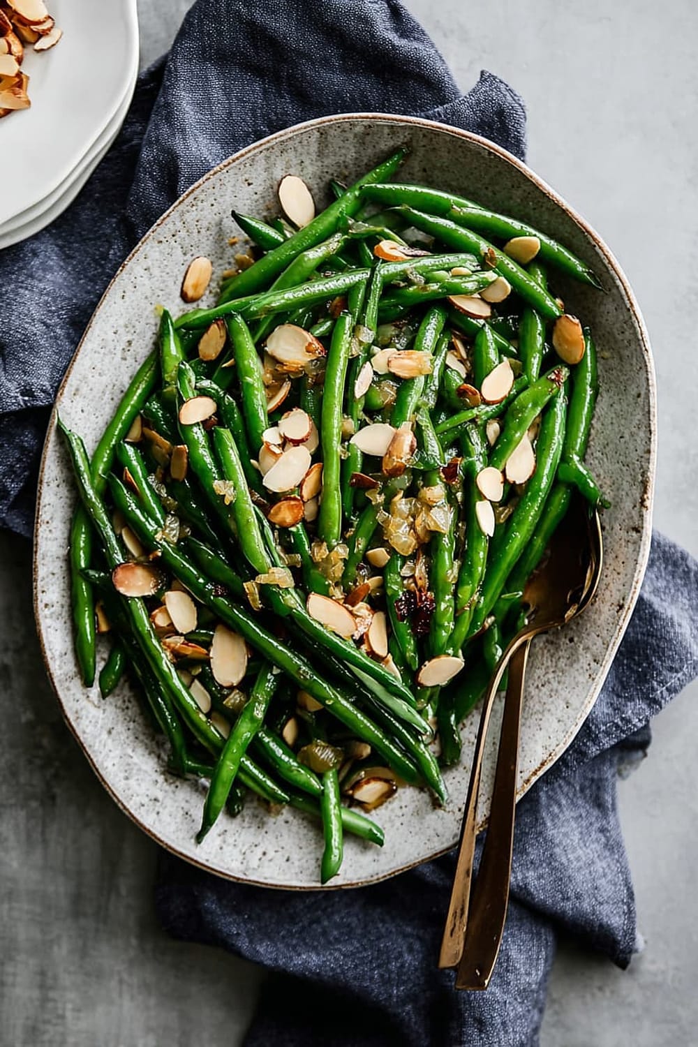 Build an elegant dinner party menu by starting with mixed greens with vinaigrette, followed by herb-roasted chicken with these green beans and garlic mashed potatoes. For holiday entertaining, pair with honey-glazed ham, wild rice pilaf, and dinner rolls. Create a Mediterranean-inspired meal with grilled fish, quinoa tabbouleh, and these almondine green beans for a healthy, flavorful combination.