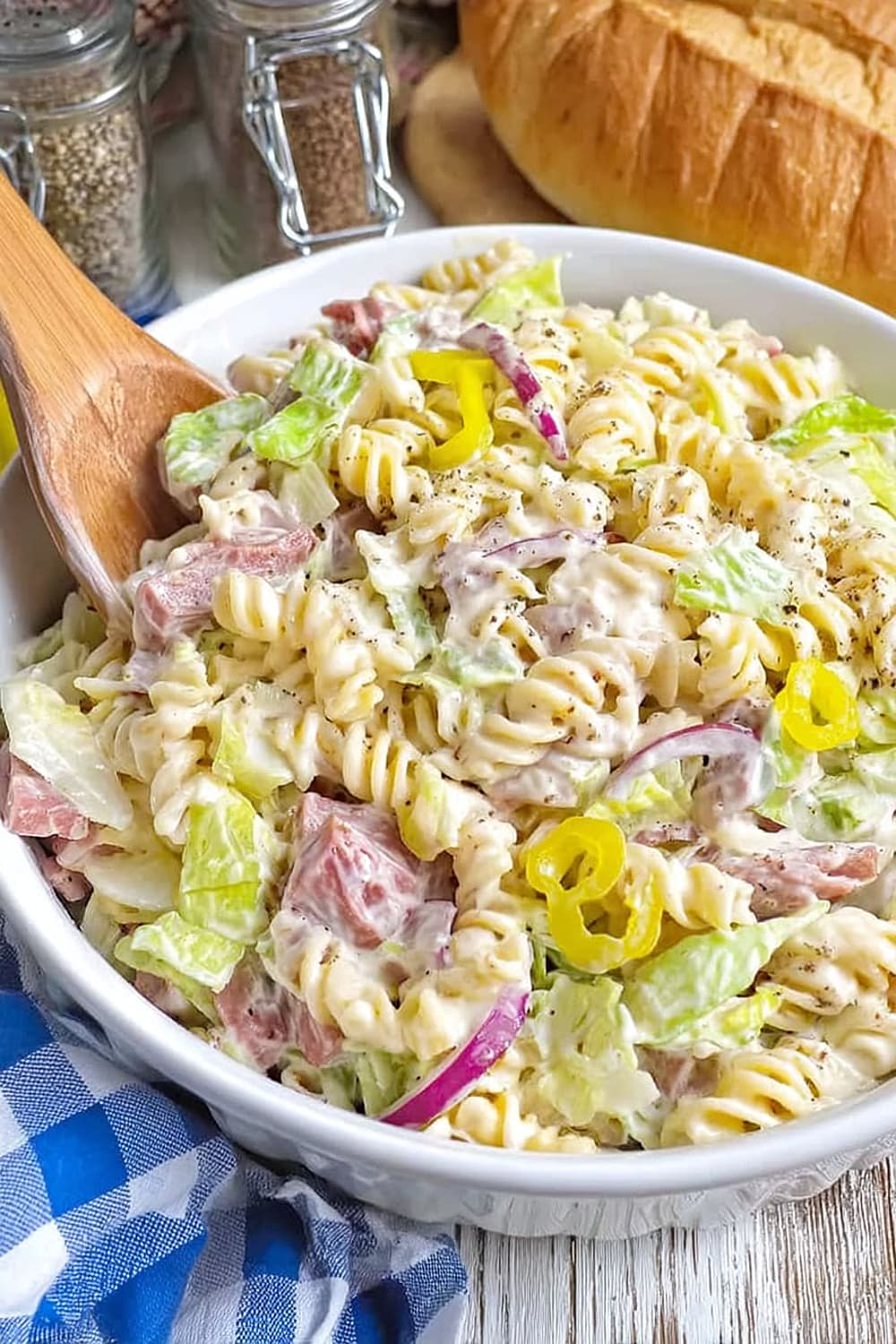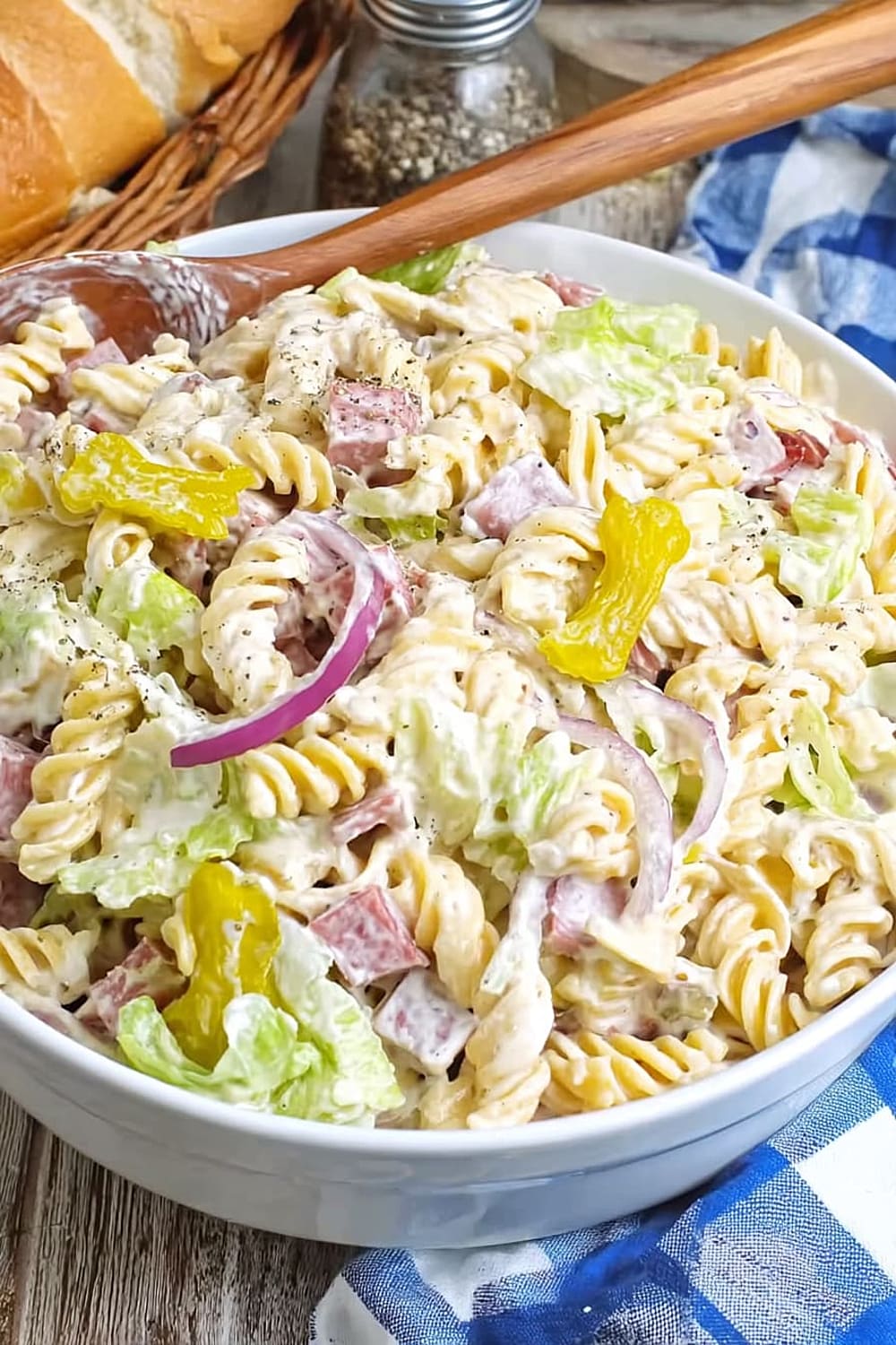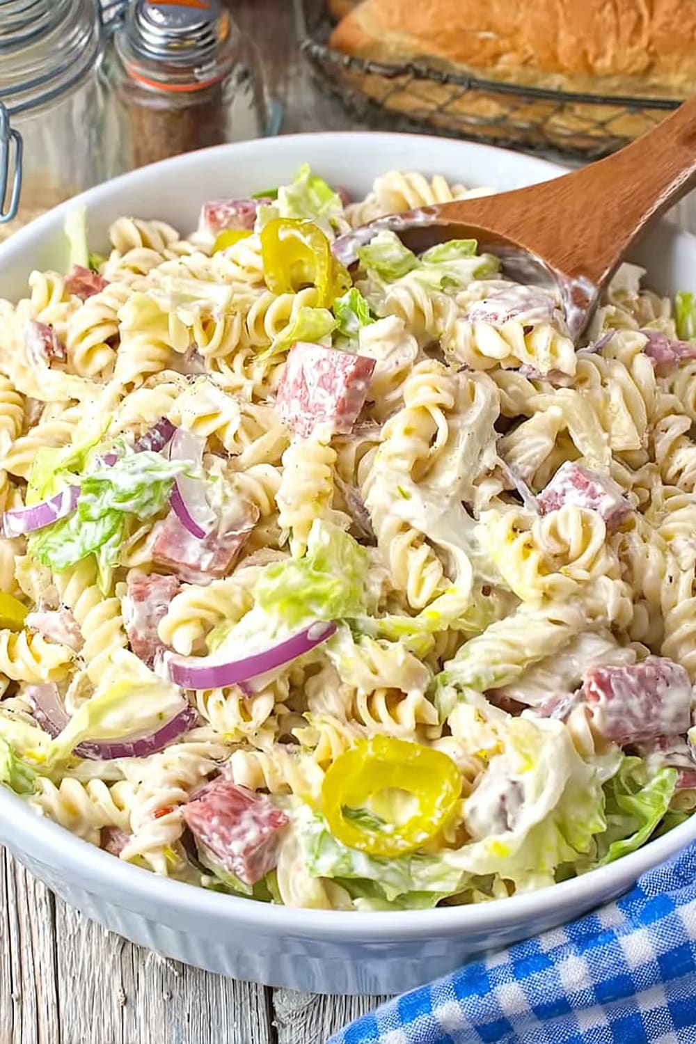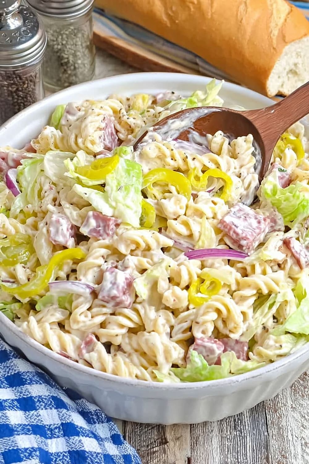 This pasta salad is basically what happens when your favorite Italian deli sandwich decides to crash a potluck and steal the show.