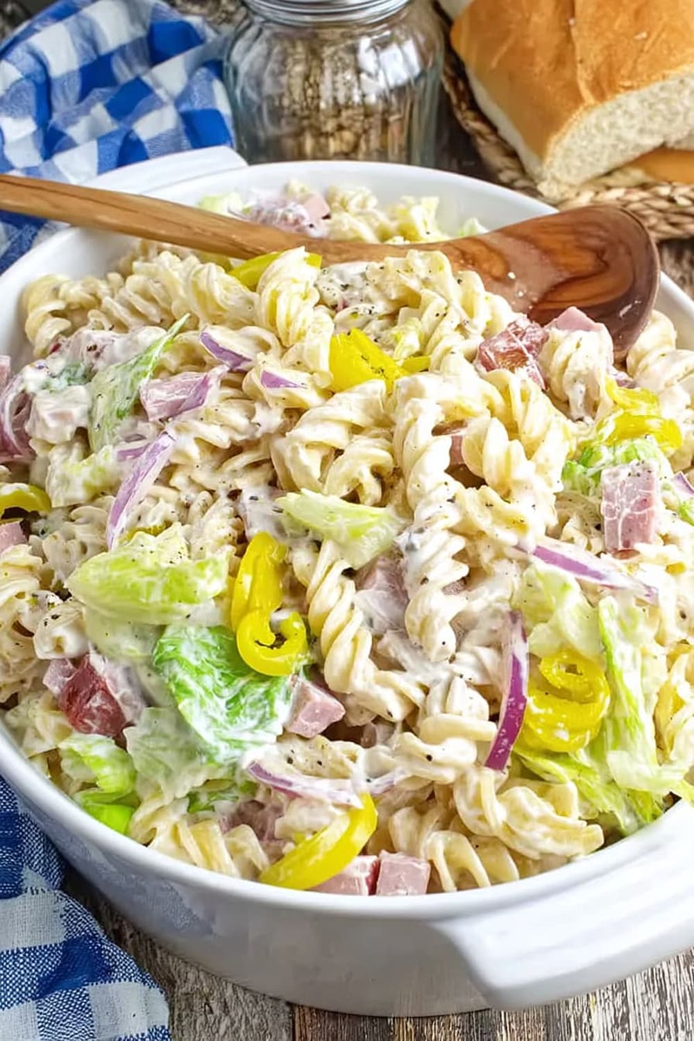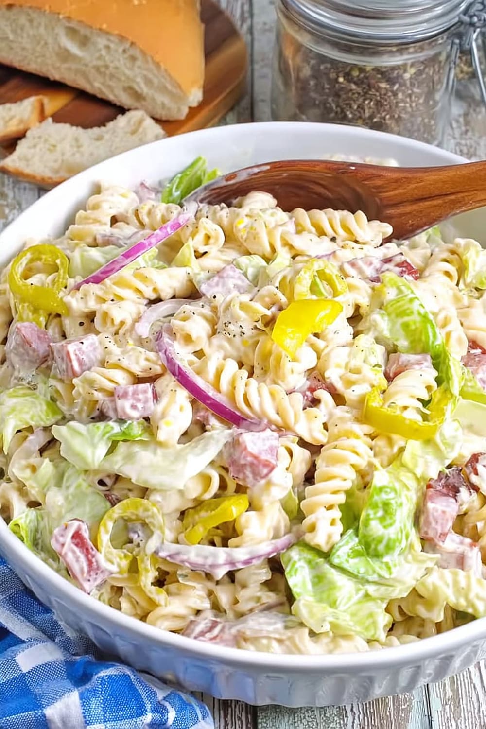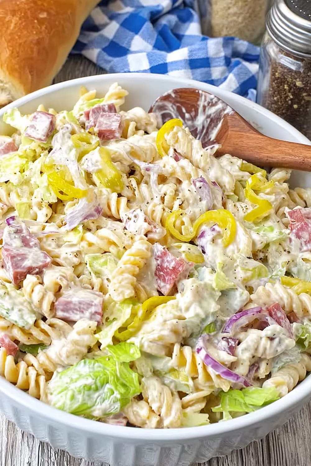 This pasta salad is basically what happens when your favorite Italian deli sandwich decides to crash a potluck and steal the show.