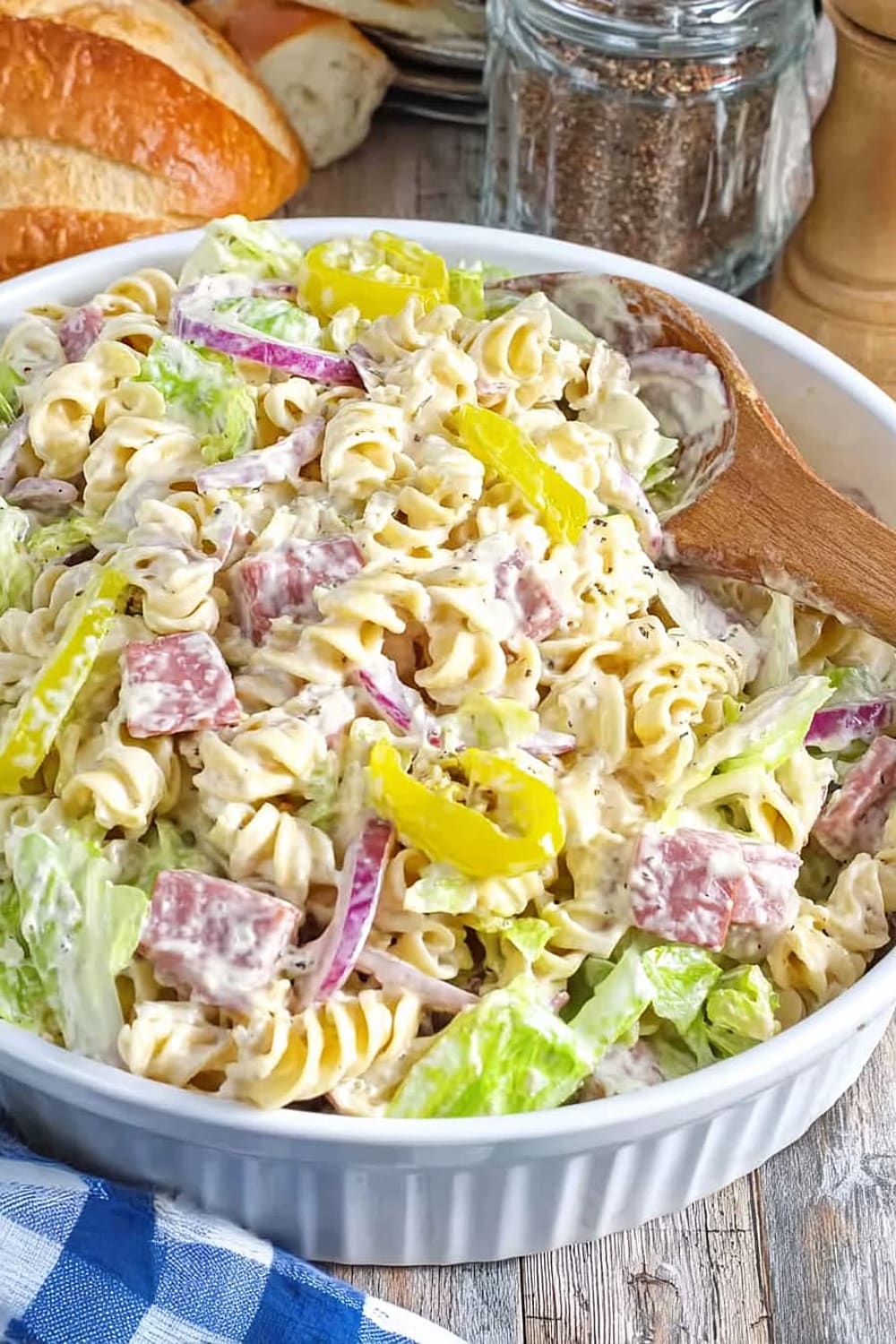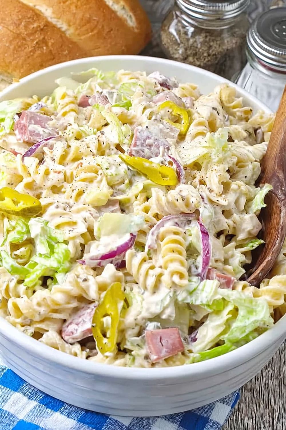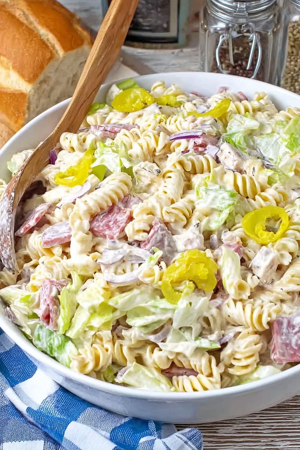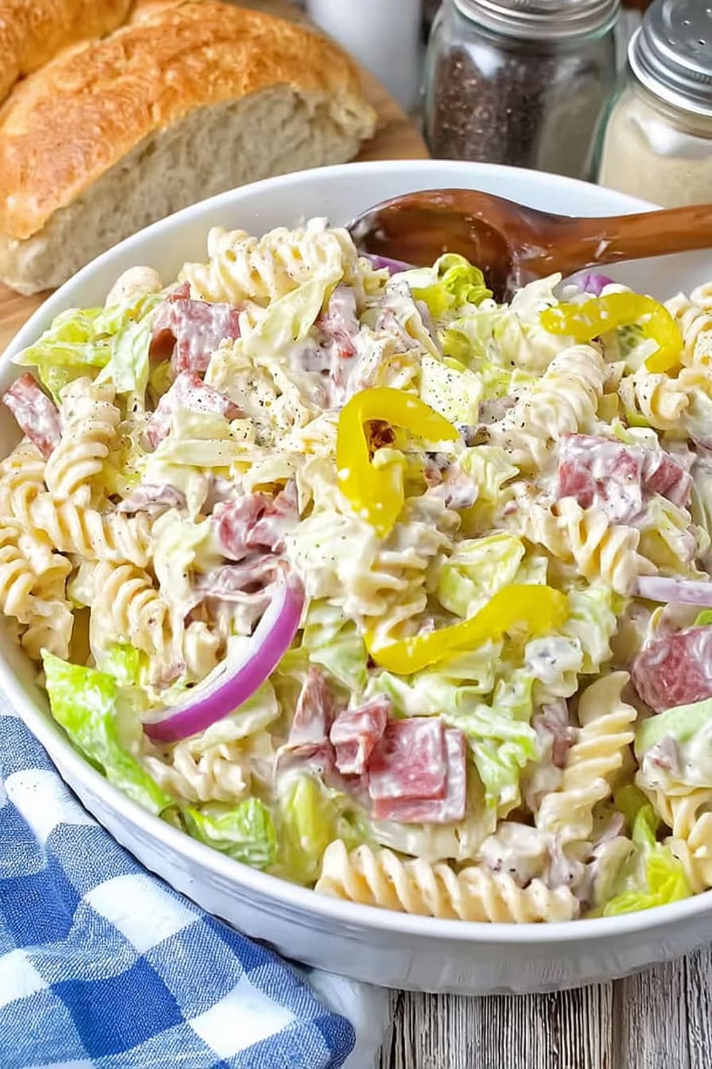 This pasta salad is basically what happens when your favorite Italian deli sandwich decides to crash a potluck and steal the show.