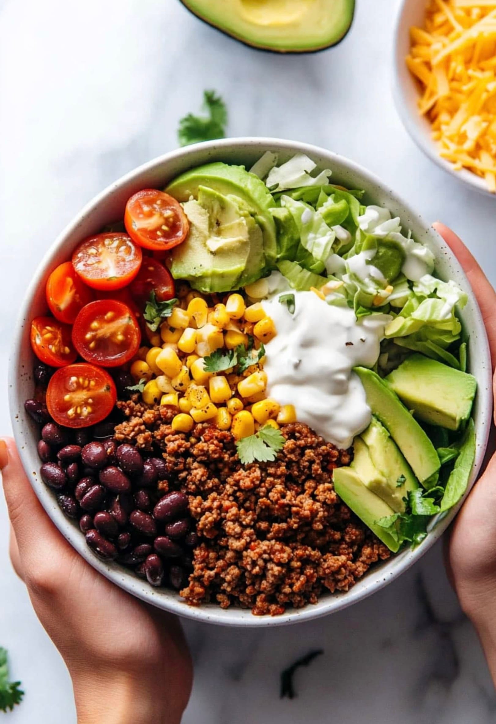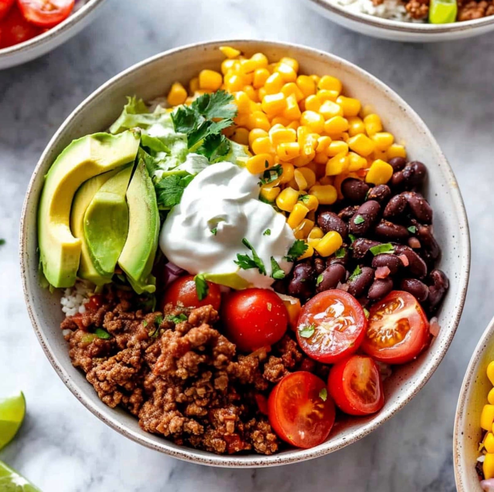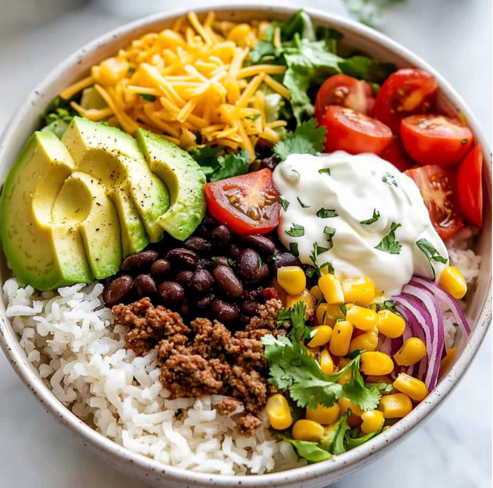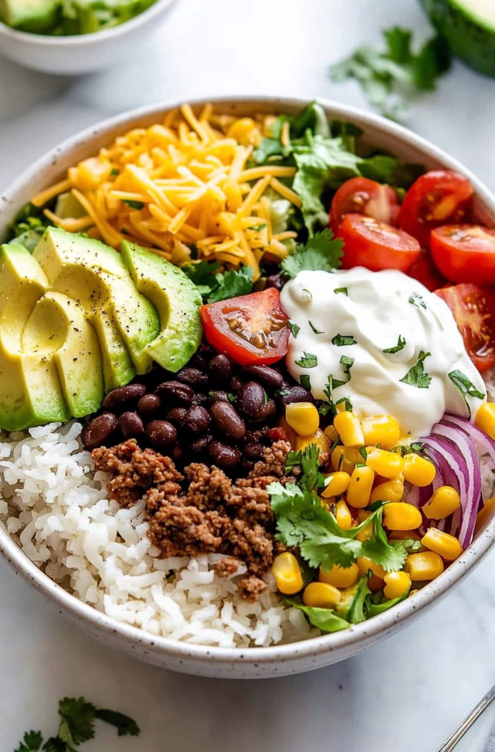 The hearty mix of seasoned ground beef, cilantro-lime rice, and colorful toppings makes for a satisfying and nutritious meal. You can easily adjust the ingredients to suit your taste or dietary needs. Whether you prefer extra spicy or mild, loaded with veggies or heavy on the cheese, these burrito bowls are sure to become a new favorite in your recipe rotation.