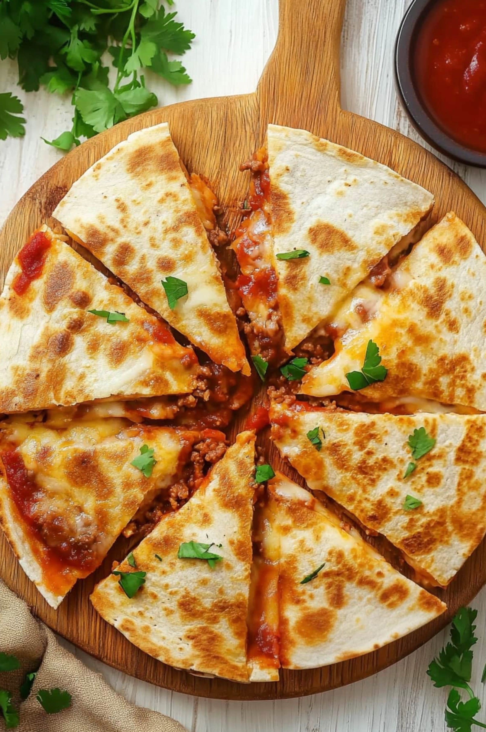 Let the quesadillas rest for a few minutes before slicing. Serve hot with your favorite toppings like salsa or sour cream.