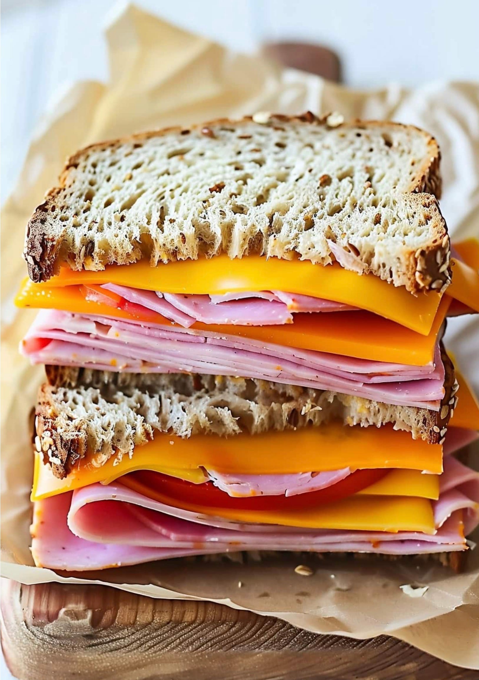 Ham and cheese sandwiches are a quick and tasty meal you can make in just 5 minutes. They’re perfect for lunch or a snack. You can make two servings with only 585 calories each.