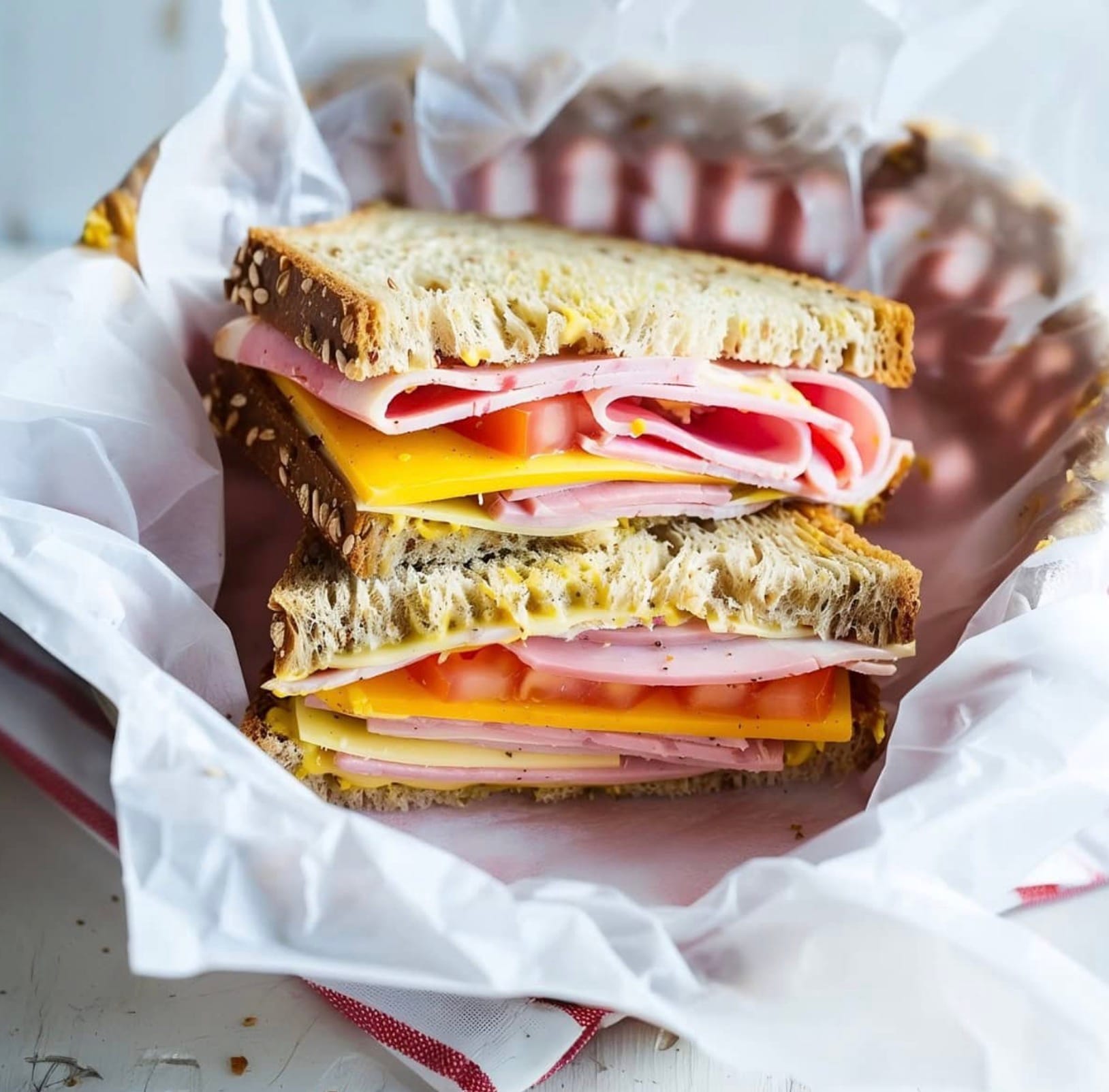 This yummy sandwich has layers of ham, cheese, and optional tomato between slices of bread. You can use different types of bread and cheese to change up the flavor. The mustard adds a nice kick too. It’s an easy recipe that anyone can make, even if you’re not good at cooking.