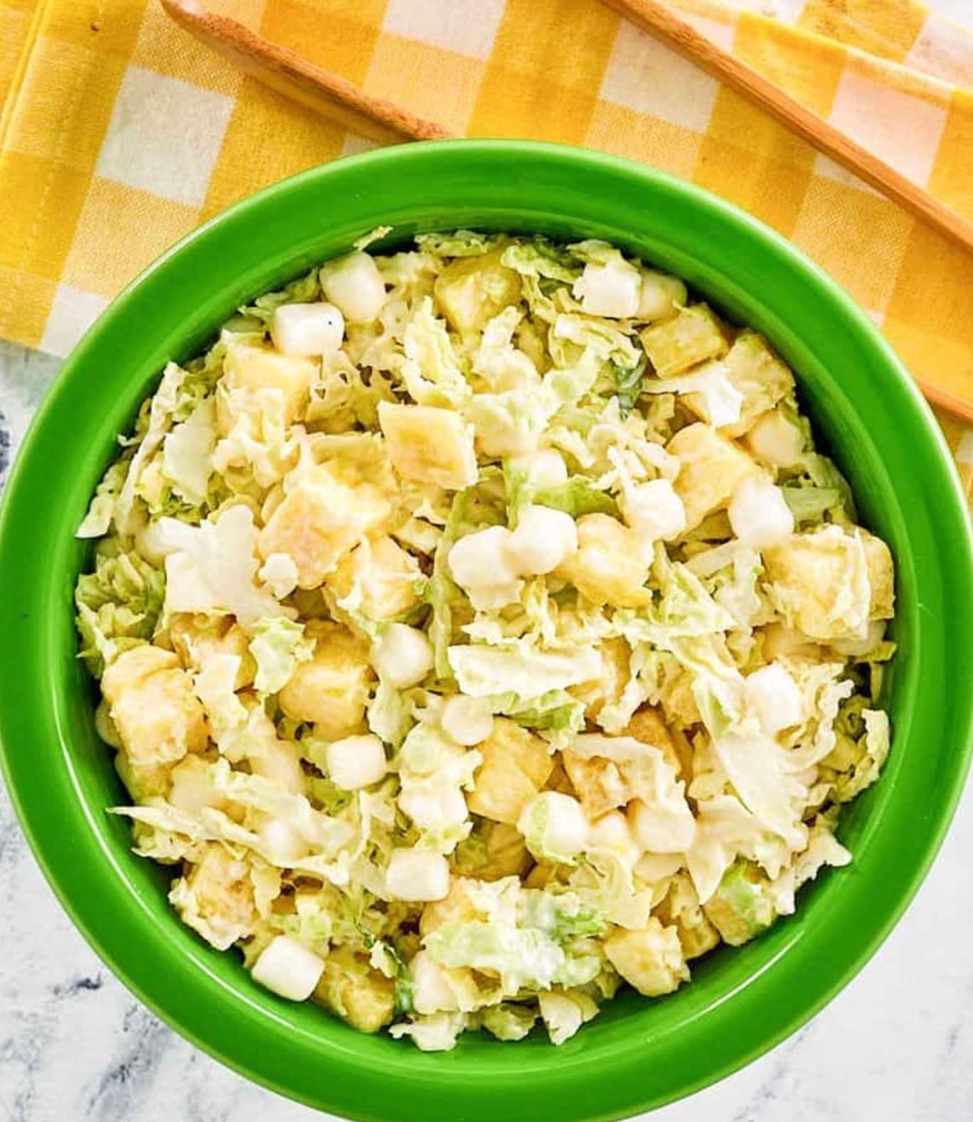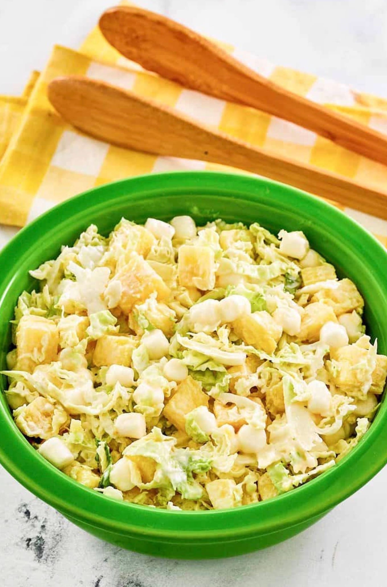 Don’t want soggy coleslaw? Drain the pineapple chunks well. You can even pat them dry with paper towels.