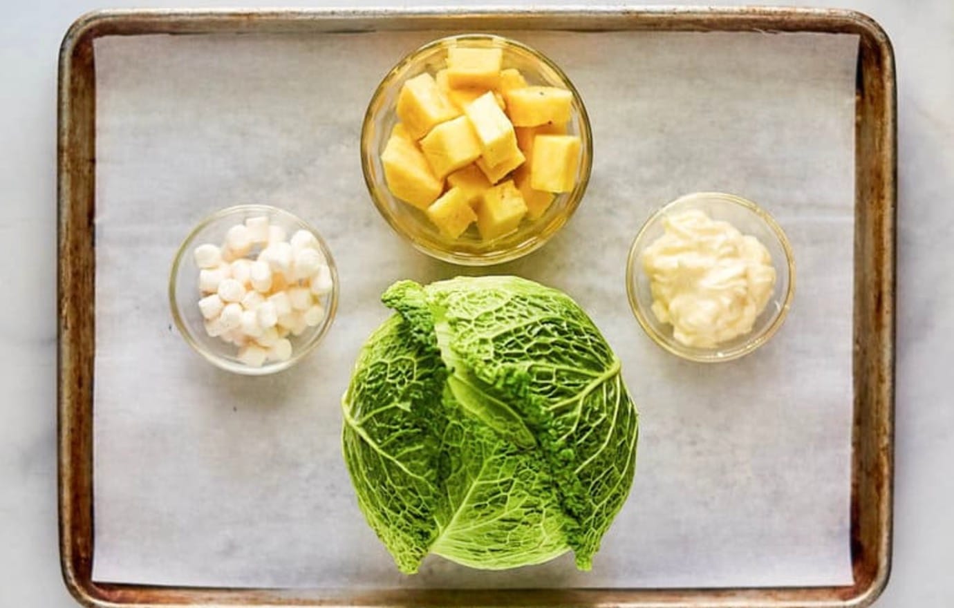 Here’s what you’ll need to make this tasty Hawaiian coleslaw with pineapple: