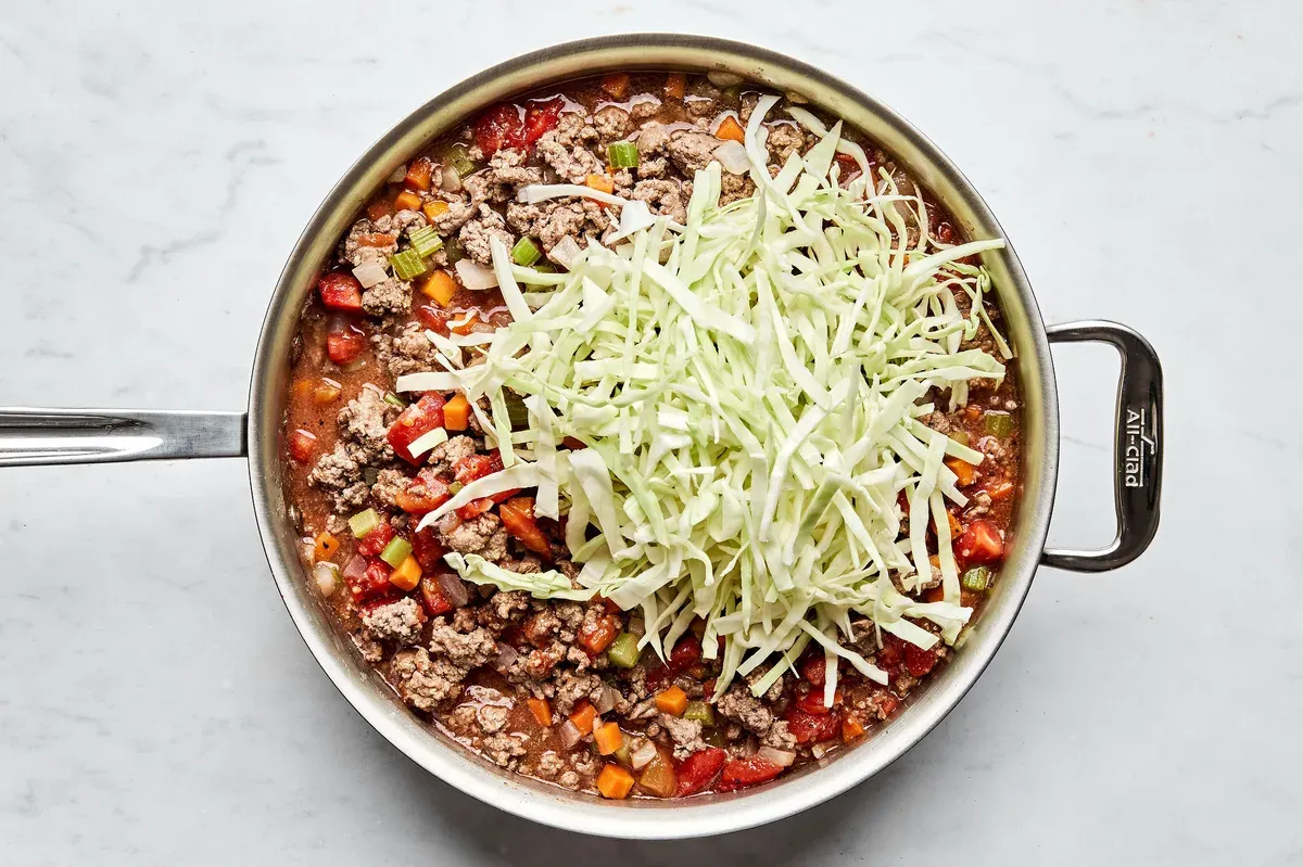 Toss in the cabbage and let everything simmer. Cook until the sauce thickens and the cabbage gets tender. This should take about 10 minutes.