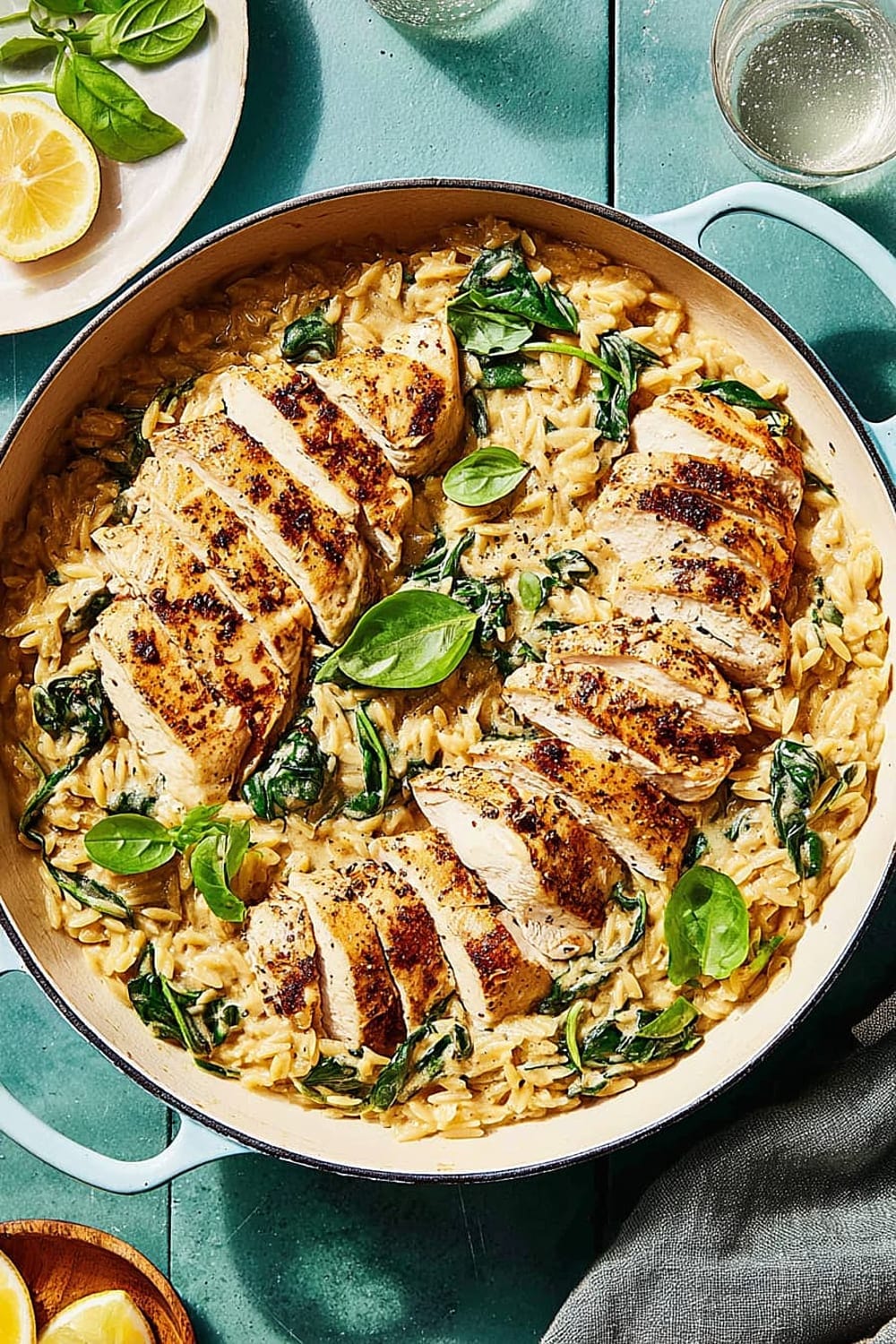 Start with bruschetta topped with fresh tomatoes and basil to set the Italian tone, then serve this orzo as your satisfying main course. Finish with fresh berries and a drizzle of honey or lemon panna cotta for a light, refreshing end to the meal. For entertaining, antipasto platters with olives, cured meats, and cheese create an elegant progression.