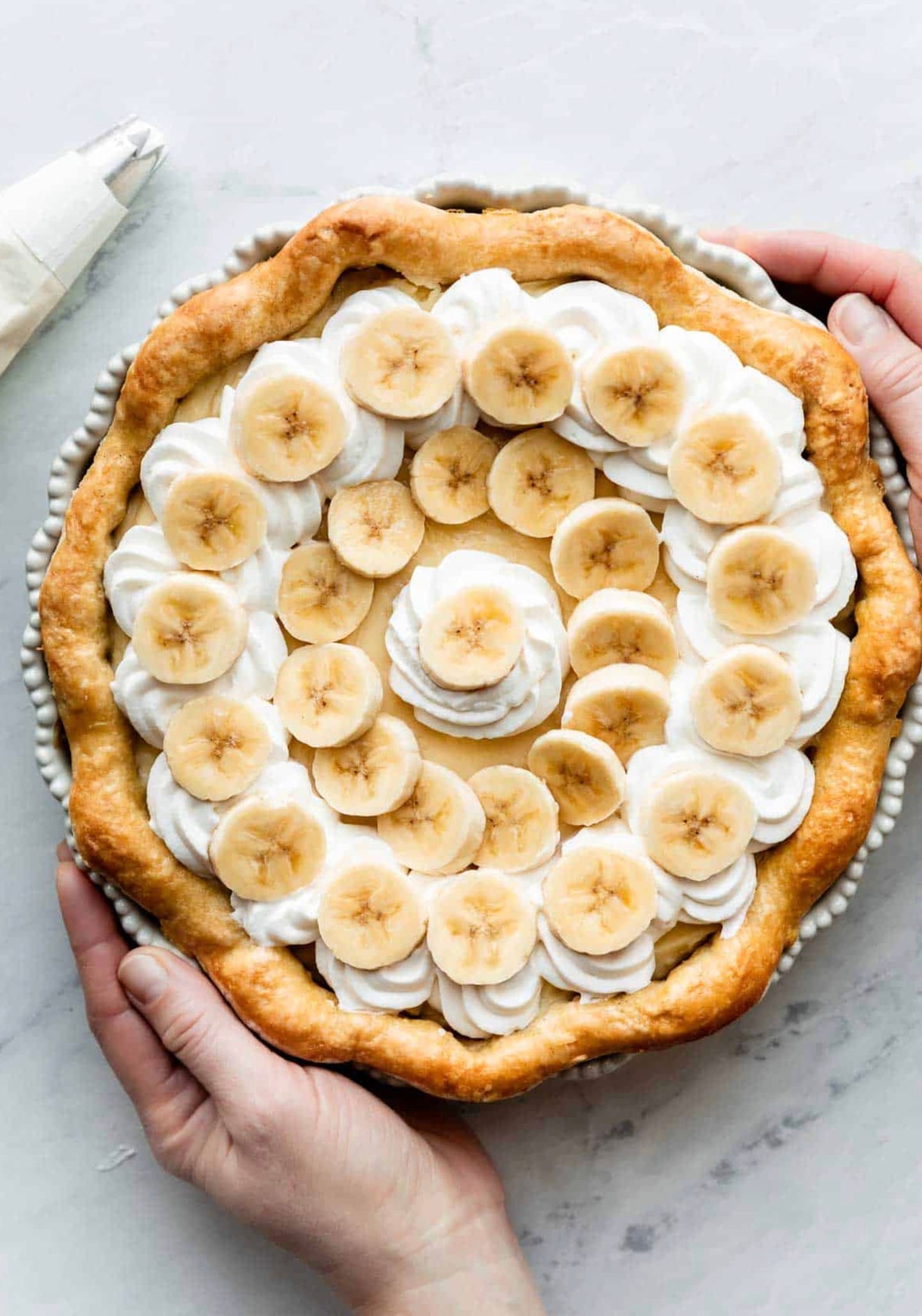 Use yellow bananas that aren’t too ripe. They’ll hold their shape better in the pie.