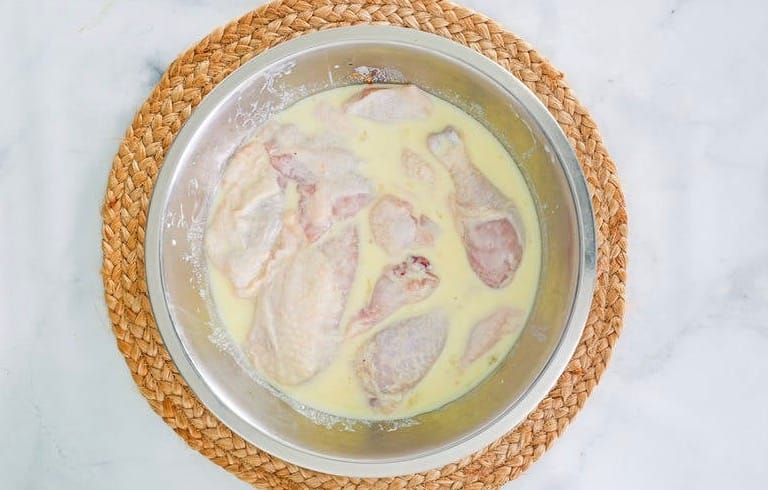 Soak chicken in the buttermilk mixture for 30 minutes.