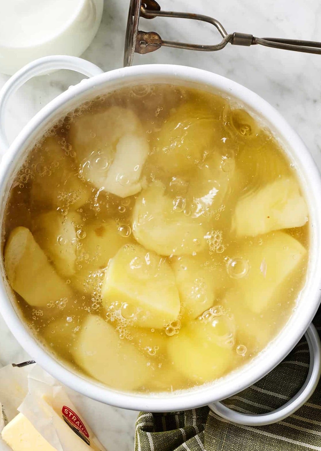 Don’t overwork your potatoes when mashing. Too much mixing can make them gluey. Use a hand masher or ricer for best results.