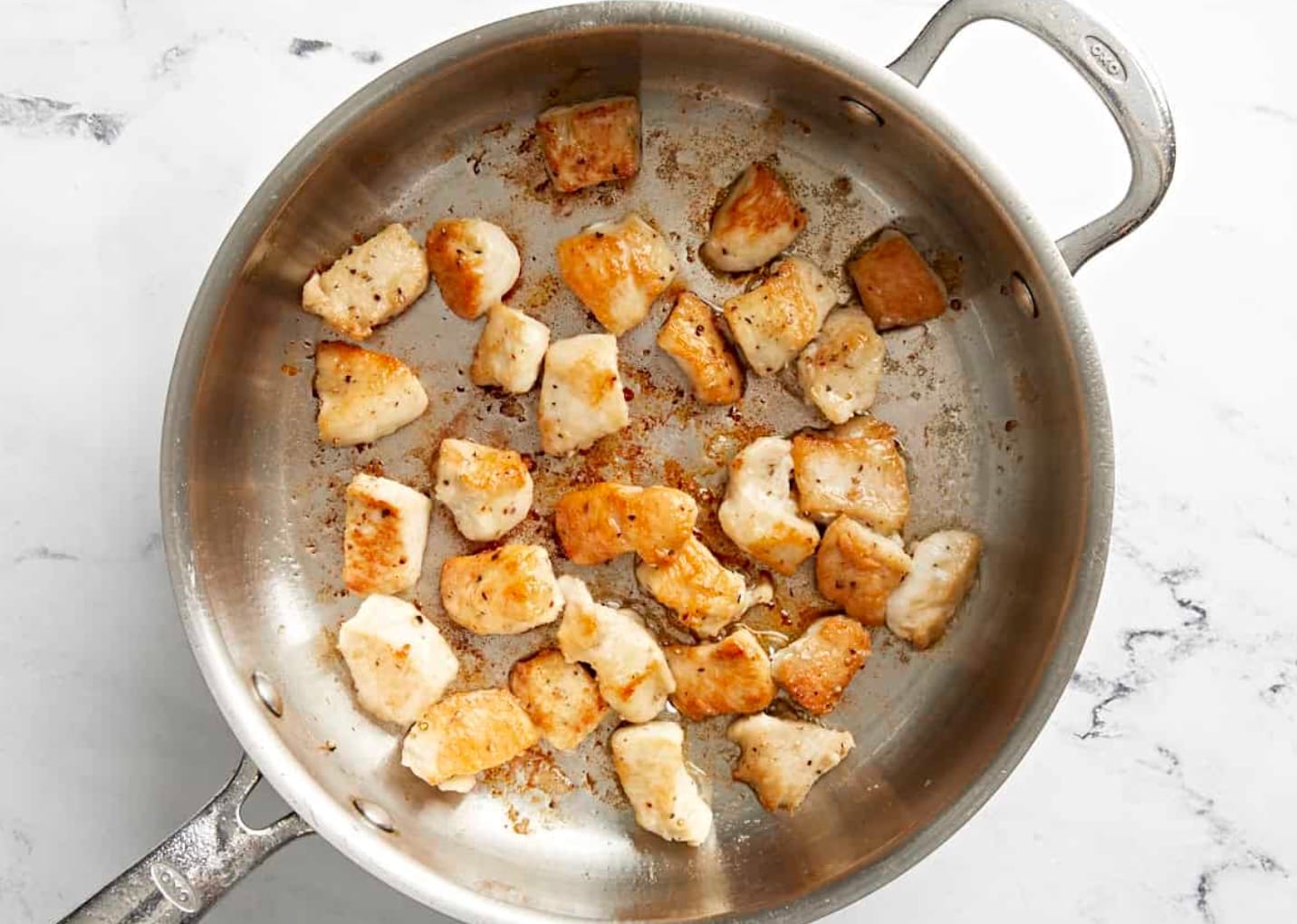 Cut the chicken into small pieces. Season with salt, pepper, and garlic powder. Coat in flour for a crispy outside. Cook in olive oil until brown. Then, sauté minced garlic in butter. This creates a tasty base for your sauce.