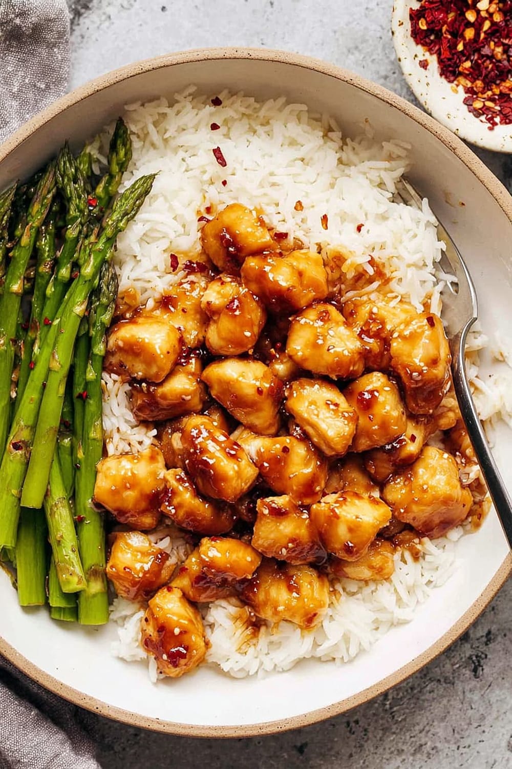 Always make your cornstarch slurry with cold water to prevent lumps, and add it gradually while whisking constantly to avoid creating a gummy texture. Pat chicken completely dry before coating with cornstarch to ensure maximum crispiness, and don’t overcrowd the pan when cooking – work in batches if necessary to maintain proper browning temperature. Taste your sauce before adding to chicken and adjust sweetness or heat levels while it’s still warm and easy to modify.